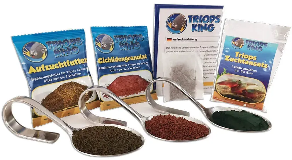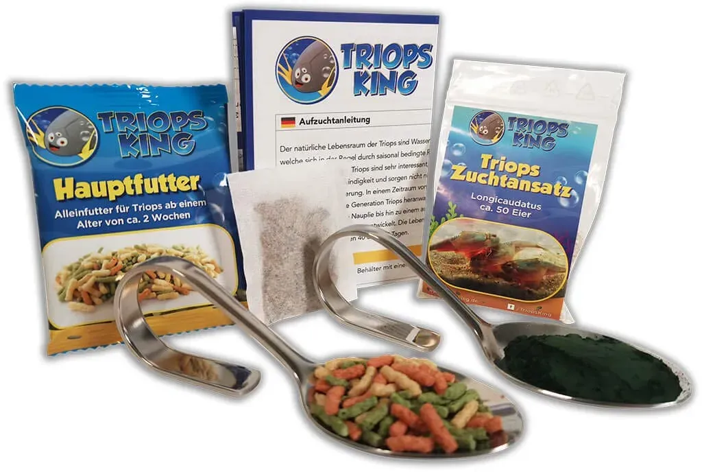 Kategorie: Teichpflege - Triops King - GTIN:0642872178243 - Triops Set für Einsteiger und Anfänger Züchte deine eigenen Urzeitkrebse zu Hause Triops Longicaudatus (im Set enthalten) werden ca. 5-7cm groß und leben ca. 60-90 Tage Lieferumfang: Triops Aufzuchtbecken, Futter, Triopseier, Reinigungsset, eine ausführliche Anleitung und ein Thermometer. Triops King Qualität! - 24,99 Euro bei Amazon Marketplace Lawn & Garden - gefunden von billiger.de Dieses 2er-Set ermöglicht die Zucht von zwei verschiedenen Farbvarianten (naturfarben und rot) und bietet somit mehr Vielfalt. ![]() ![]() AQ4Aquaristik Triops longicaudatus 2er-Set - naturfarben und rot (2 Zuchtansätze, mit je ca. 100 Urzeitkrebs-Eiern), Starter-Set mit Futter und Anleitung