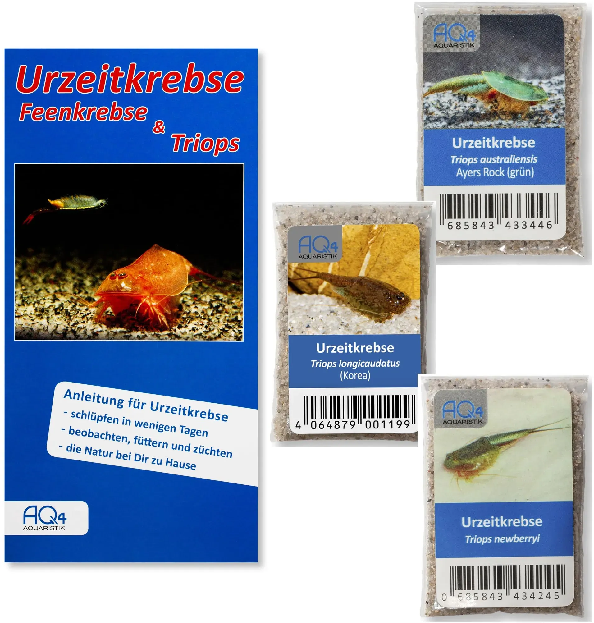Kategorie: Experimentierkästen - aq4aquaristik - GTIN:0685843434160 - 3-er-Set bestehend aus: Triops australiensis (grün), Triops newberryi und Triops longicaudatus (Südkorea) Besondere Urzeitkrebse für den ambitionierten Züchter, mit umfangreicher Anleitung für die erfolgreiche Zucht! Triops lassen sich erfolgreich in kleinen Aquarien bzw. Becken mit weichem Süßwasser züchten Urzeitkrebs Eier (Zysten) sind ein Naturprodukt, bei dem der Erfolg von Wasser, Licht und Temperatur und den Eiern abhängt. AQ4Aquaristik testet jede Charge mehrfach. Eier sind allerdings im Sand ungleich verteilt und es können Eier dabei sein, die nicht oder erst nach mehrmaligem Trocknen reif zum Schlupf sind. Bei Fragen oder Problemen schreiben Sie AQ4Aquaristik für Hilfe unter Nennung des verwendeten Wassers und Lichtes bitte direkt an. - 38,95 Euro bei Amazon Marketplace Lawn & Garden - gefunden von billiger.de Dieses Starterset bietet ein 2,5 Liter Aquarium und Zubehör, was es zu einem guten Komplettpaket für den direkten Start macht. ![]() ![]() Triops longicaudatus (rot) Starterset: ca. 100 Urzeitkrebse Eier, 2,5 l Aquarium, Zubehör, Futter und Anleitung