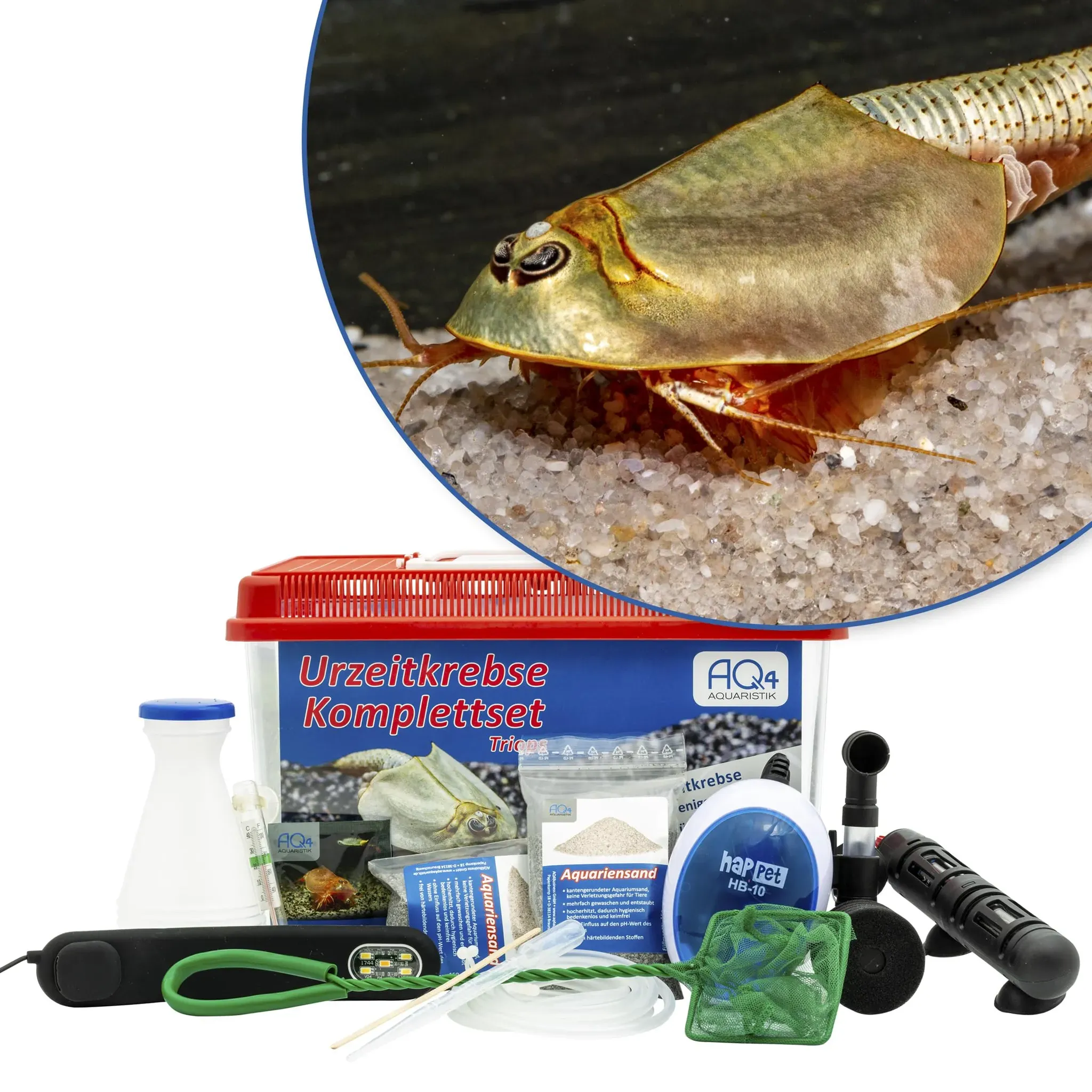 Für den Start empfiehlt sich ein Komplettset mit mindestens 5 Litern Volumen, Sand, Futter und Thermometer, das Sie bequem im Preisbereich von 25 bis 40 Euro finden können. Beispiele für Suchbegriffe im Meta-Preisvergleich: Jetzt live Suche nach triops longicaudatus set starten! Empfohlene Triops longicaudatus set Angebote*Durch Käufe über Links zu Händlern kann diese Website eine Provision erhalten, u.a. durch das eBay Partner Network und das AmazonPartnerNetHier ist eine Auswahl von 15 repräsentativen und empfehlenswerten Triops Longicaudatus Sets, die verschiedene Preisbereiche und Arten abdecken: Ein sehr günstiges Natur-Erlebnis-Set, das sich auf die Eier und eine Anleitung konzentriert und somit eine minimalistische Option darstellt. ![]() ![]() AQ4Aquaristik Triops Zuchtansatz Natur-Erlebnis-Set Urzeitkrebs-Eier ca. 100 Stück in Sand mit Anleitung