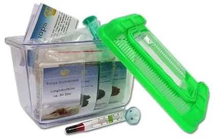 Kategorie: Zubehör für Landwirtschaft - Triops King - GTIN:0616932351457 - TRIOPS LONGICAUDATUS: Der Triops Longicaudatus ist die bekannteste Art der Triops Gattungen. Er lebte schon zu Zeiten der ersten Dinosaurier und besiedelt auch heute noch die Erde. Das macht ihn zu einem bemerkenswerten Anpassungskünstler WISSENSWERTES: Mit unserem Triops Starter Set kannst du ganz einfach deine eigenen Urzeitkrebse zuhause im Wohnzimmer züchten. Bei ca. 24 C fühlen sich die aus Amerika stammenden Krebse besonders wohl. Ausgewachsene Triops werden ca. 5-7 cm groß und erreichen in der Regel ein Alter von ca. 60-90 Tagen FüR GROß UND KLEIN: Die Aufzucht von Urzeitkrebsen ermöglicht Kindern, die Entwicklung vom Ei bis hin zum fertigen Triops mitzuerleben und dabei spielerisch zu lernen. Das Zucht-Experiment bereitet aber nicht nur Kindern einen riesen Spaß ? auch bei Erwachsenen erfreut es sich einer immer größer werdenden Beliebtheit FüR EINSTEIGER: Die Aufzuchtanleitung erklärt in einfachen Schritten, wie die Urzeitkrebse gezüchtet und gepflegt werden müssen. Damit eignet sich das Set gleichermaßen für Nachwuchs-Züchter wie für Triops-Experten. Darüber hinaus enthalten unsere Zuchtansätze wertvolle Mikroorganismen für eine bessere überlebensrate in den ersten Tagen PRODUKTDETAILS: Das Urzeitkrebse Starter Set Ultra umfasst ein Triops Eier-Sand-Gemisch mit Eiern aus eigener Zucht in Deutschland sowie Jungtierfutter, Aufzuchtfutter, Cichlidengranulat, einen Wasseraufbereiter und eine ... Ein interessantes 3er-Set mit seltenen Triops-Arten (australiensis, longicaudatus Südkorea, newberryi) für erfahrene Züchter, die Abwechslung suchen. ![]() ![]() AQ4Aquaristik Triops RARITäTEN 3er-Set - Triops australiensis (grün), T. longicaudatus (Südkorea) und T. newberryi - (DREI Zuchtansätze, mit Urzeitkrebs-Eiern) mit Anleitung