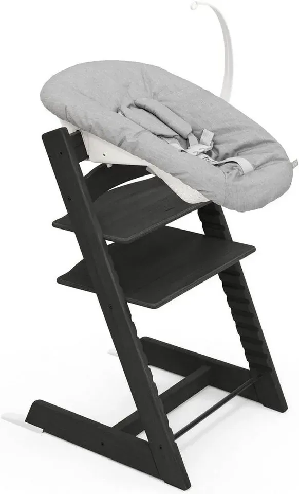 Wohnen Hochstühle Treppenhochstühle Babymöbel - EAN:4069291004803 - Mit dem Treppenhochstuhl Tripp Trapp von Stokke sitzen Kinder auf selbstverständliche Art und Weise ergonomisch. Das wohldurchdachte Design des Klassikers wächst individuell mit Deinem Kind mit und passt sich an seine Proportionen an. Mit seinem klassischen, legendären Design von Peter Opsvik ist der Tripp Trapp immer 'en vogue'. Ab Geburt einsatzbereit: Im Lieferumfang ist bereits das Stokke Tripp Trapp Newborn Set enthalten. Altersempfehlung: ab Geburt bis max. 9 kg mit Newborn Set (enthalten), ab n bis ins Erwachsenenalter (belastbar bis 136 kg), ab 6 Monaten mit Tripp Trapp Baby Set (separat erhältlich) Material: Stuhl: hochwertiges Eichenholz, lackiert; Newborn Set: Schale aus Kunststoff; Textilbezug: 80 % Polyester, 20 % Baumwolle, Füllung: 100 % Polyester Verstellbarkeit: höhen- und tiefenverstellbare Sitz- und Fußplatte, Newborn Set 2-fach verstellbar Sicherheit: Newborn Set mit gepolstertem 5-Punkt-Gurt Lieferumfang: Treppenhochstuhl Tripp Trapp mit Sitz- und Fußplatte, Tripp Trapp Newborn Set (inkl. Polster, 5-Punkt-Sicherheitsgurt und Gurtpolster, Spielzeughalter, extralange Bodengleiter, Textilset) Kommunikation auf Augenhöhe Preisgekrönt und seit 1972 absolut überzeugend: Mit dem Treppenhochstuhl Tripp Trapp nimmt der Nachwuchs direkt am Geschehen des Familientischs teil. Das Kind kommuniziert auf Augenhöhe mit den Erwachsenen und schult seine sprachlichen und sozialen Kompetenzen. Ob beim ... Ein schwarzer Tripp Trapp Hochstuhl mit Newborn Set, der eine sichere und ergonomische Lösung für Neugeborene bietet. ![]() ![]() Stokke Hochstuhl Tripp Trapp® Kinderhochstuhl mit Newborn Set, Höhen- und tiefenverstellbare Sitz- und Fußplatten schwarz