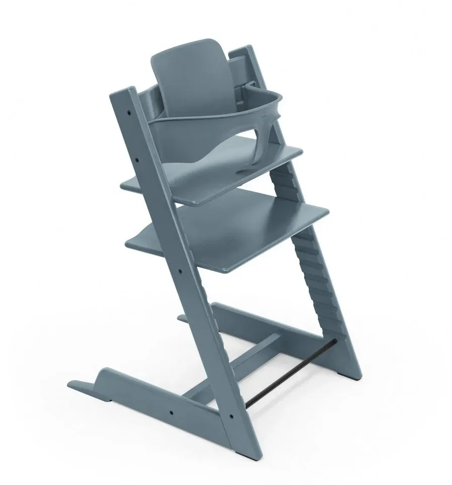 Wohnen Hochstühle Treppenhochstühle Babymöbel - EAN:7040354952016 - Mit dem Treppenhochstuhl Tripp Trapp von Stokke sitzen Kinder auf selbstverständliche Art und Weise ergonomisch. Das wohldurchdachte Design des Klassikers wächst individuell mit Deinem Kind mit und passt sich an seine Proportionen an. Mit seinem klassischen, legendären Design von Peter Opsvik ist der Tripp Trapp immer 'en vogue'. Material: hochwertiges Eichenholz, lackiert Verstellbarkeit: höhen- und tiefenverstellbare Sitz- und Fußplatte Maße: 79(H) x 46(B) x 49(T) cm Gewicht: 7 kg Altersempfehlung & Langzeitnutzen: ab n bis ins Erwachsenenalter (belastbar bis 136 kg); ab Geburt mit Tripp Trapp Newborn Set (separat erhältlich), ab 6 Monaten mit Tripp Trapp Baby-Set (separat erhältlich) Lieferumfang: Treppenhochstuhl Tripp Trapp mit Sitz- und Fußplatte (Zubehör separat erhältlich) Kommunikation auf AugenhöhePreisgekrönt und seit 1972 absolut überzeugend: Mit dem Treppenhochstuhl Tripp Trapp nimmt der Nachwuchs direkt am Geschehen des Familientischs teil. Das Kind kommuniziert auf Augenhöhe mit den Erwachsenen und schult seine sprachlichen und sozialen Kompetenzen. Ob beim Essen, Malen oder Basteln - das Kleine ist immer dabei und genießt die Gesellschaft der Großen. Funktionales Design für gesundes SitzenSowohl Sitz- als auch Fußplatte des Stuhls sind in der Höhe und Tiefe verstellbar. Unabhängig vom Alter und der Körpergröße des Kindes wird so eine nahezu perfekte Sitzposition möglich. Sind die Abstände ... Ein Tripp Trapp Hochstuhl in Fjord Blue inklusive Baby Set2, der eine komplette Lösung für Kinder von 6-36 Monaten darstellt. ![]() ![]() Stokke Tripp Trapp Hochstuhl, Fjord Blue - Inklusive Stuhl + Baby Set2 für Kinder von 6-36 Monaten - Verstellbar, ergonomisch & leicht zu reinigen