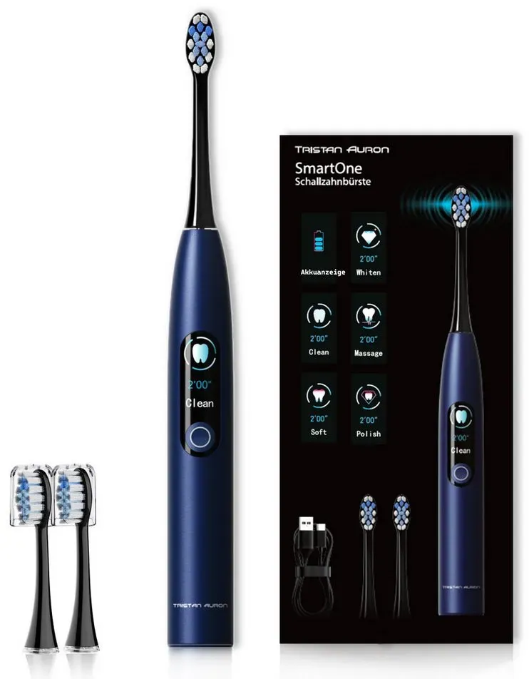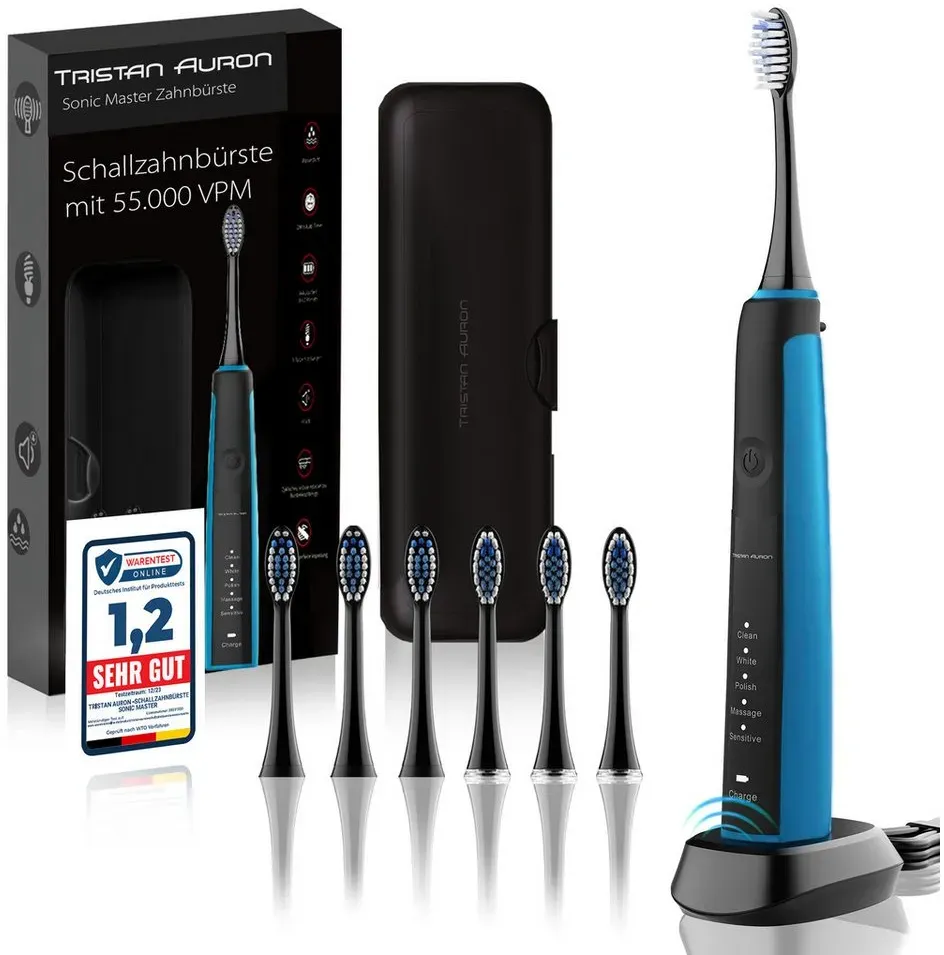 Verfügbarkeit: lieferbar-in 2-3 Werktagen bei dir - 44.90€/1Stk - Kategorie: Elektrische Zahnbürsten - Tristan Auron - GTIN:4260287215016 - Ausstattung & Funktionen Reinigungstechnologie , Schalltechnologie, Reinigungsprogramme , Soft White Polish Massage Superfine, Anzahl Reinigungsprogramme , 5, Zeitfunktionen , 2-Minuten-Timer 4-Quadranten-Timer, Anzahl Aufsteckbürsten , 2 St., Technische Daten Anzahl Bürstenkopfbewegungen / Minute , 55000, WEEE-Reg.-Nr. DE , 22865407, Stromversorgung Art Stromversorgung , Induktion, Dauer Vollladung , 4 h, Akkukapazität , 800,00 mAh, Farbe & Material Farbe , Blau, Hinweise Hersteller , , Lieferumfang , 1x elektrische Schallzahnbürste Induktion Ladestation mit USB Anschluss Reiseetui 2x professionelle Aufsteckbürsten, - 44,90 Euro bei OTTO - gefunden von billiger.de Diese kompakte und wasserfeste Schallzahnbürste ist ideal für den täglichen Gebrauch und Reisen. ![]() ![]() Tristan Auron Schallzahnbürste €“ Kompakte elektrische Zahnbürste mit 2 Aufsteckbürsten €“ 55.000 Schwingungen, 5 Modi €“ 60 Tage Akku €“ USB-Ladung, wasserfest (Schwarz)