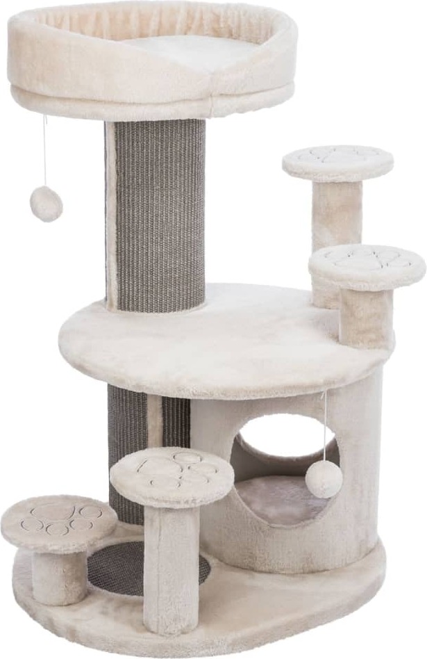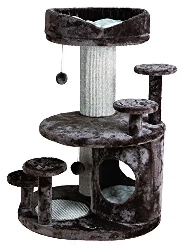 TRIXIE - EAN: 4053032449305 - Die vier gepolsterten Aufstiegshilfen zeichnen diesen Kratzbaum aus und ermöglichen gerade älteren Katzen das problemlose Erreichen der höheren Ebenen. Der mit Natursisal ummantelte, große Stamm, sowie die Kratzfläche der Bodenplatte, befriedigen das natürliche Kratzverhalten Ihres Stubentigers. Die gepolsterten Liegeplatten verschaffen eine hervorragende Aussicht und laden zum ausgiebigen Verweilen ein. Die Höhle mit Wendekissen ist der ideale, kuschelige Rückzugsort. Die obere, große Liegeplatte verfügt zudem über ein abnehmbares Kuschelbett. Maße (BxTxH): ca. 69x59x96cm - bei fressnapf.de - aus Yadore Produktdaten ![]() ![]() Trixie Emil 69 x 59 x 96 cm braun/beige