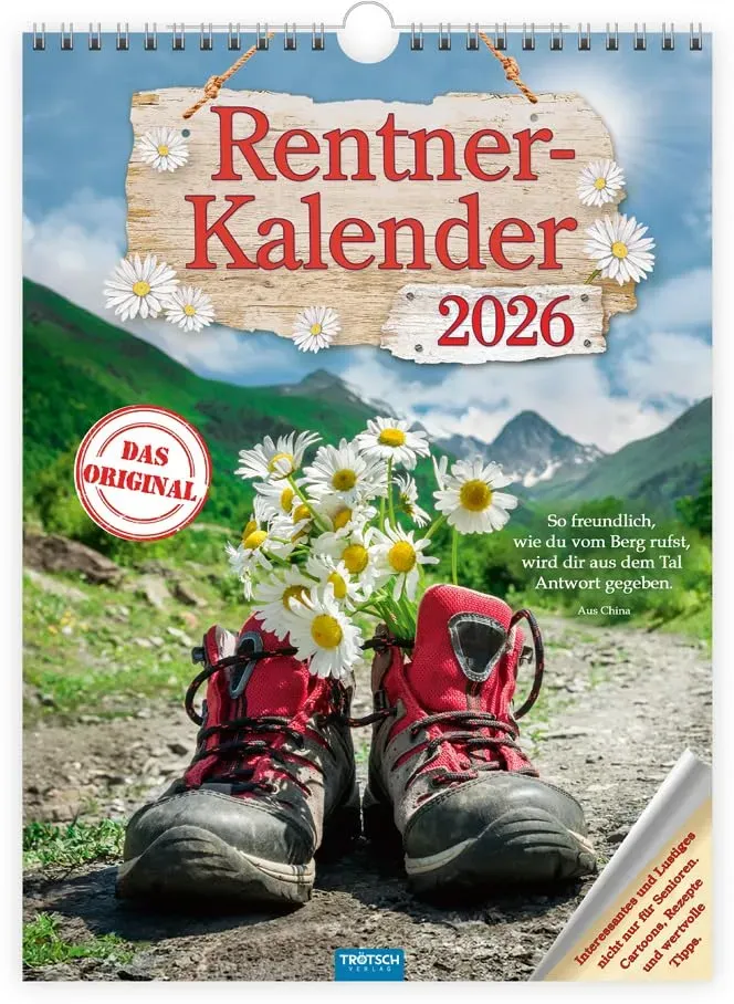 Beliebte Merkmale sind die Kombination aus praktischen Kalenderfunktionen (Feiertage, Mondphasen, Notizflächen) und humorvollen, altersgerechten Motiven. Die Marke Trötsch ist etabliert und bekannt für qualitativ hochwertige Kalender mit speziellem Fokus. Für die Suche und den Kauf können Sie gezielt nach 'Trötsch Classickalender Rentnerkalender 2026' suchen, um die neueste Ausgabe zu finden. Achten Sie auf Händler mit guten Bewertungen und auf Angebote mit Versandoptionen, die zu Ihnen passen. Beispielhafte Links zum direkten Vergleich und Kauf: