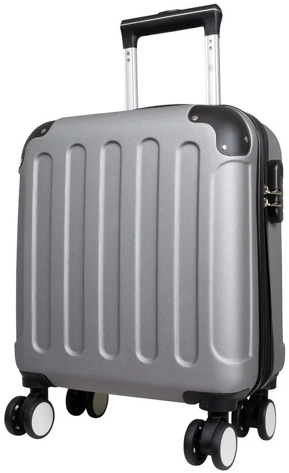 lieferbar-in 3-4 Werktagen bei dirTrendyshop365 Hartschalen-Trolley Avalon, 5 Größen, 4 Farben, 4 Rollen, robust, Doppelrollen, Zahlenschloss, 2 Tragegriffe, extra Kantenschutz silberfarben 36 cm x 45 cm x 20 cm