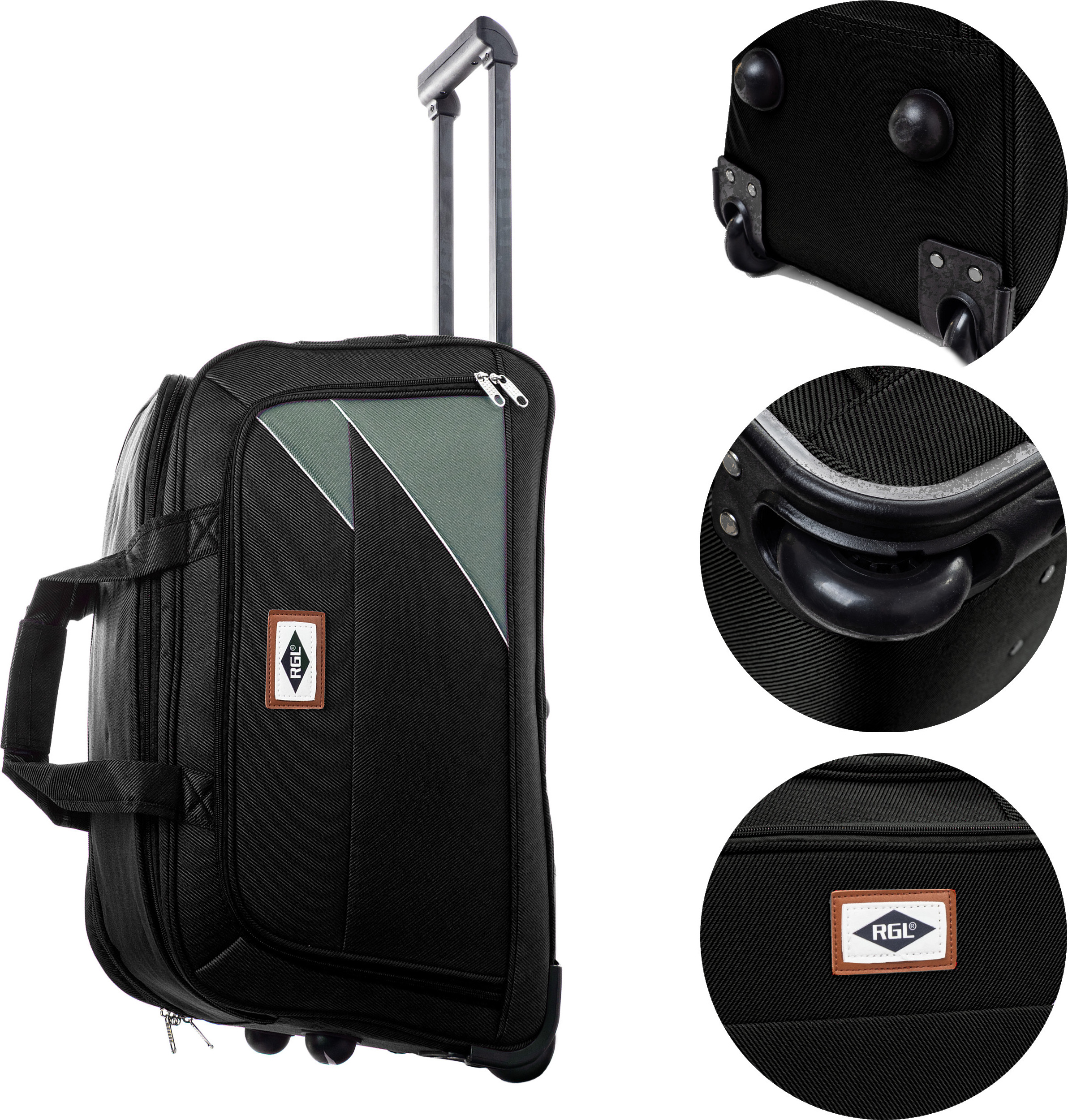 EAN: 4796735731475 - RGL SL Reisetasche auf Rollen - Deine Wahl! Technische Daten:Material: StoffFarben: SchwarzGröße: M 20'Maße mit Anbauteilen (Rollen, Griffe & Zahlenschloss): ca. 50x22x28Volumen: ca. 30LGeräumige, robuste und praktische Reisetasche auf Rollen. Perfekt für jede Reise. Ein zusätzlicher Vorteil ist die Möglichkeit, die Tasche wie einen Koffer zu ziehen. Zwei Gummireifenund ein ausziehbarer Griff. Das Hauptfachbietet Platz für alles Notwendige, vorne befindet sich eine kleinere Taschefür Kleinigkeiten. Spezifikationen:Zwei GummireifenAusziehbarer GriffEin Hauptfachund ein kleineres für KleinigkeitenDicke, massive ReißverschlüsseMöglichkeit, das Hauptfach mit einem Zahlenschlosszu sichernSolide VerarbeitungFüßezum Schutz vor Abnutzung und Verschmutzung der TascheBequemer Tragegriff - bei kaufland.de - aus Yadore Produktdaten Diese Trolley-Reisetasche ist mit 33,53 Euro eine praktische Wahl für Handgepäck, da sie eine Dehnfalte und Schienen für Treppen besitzt. ![]() ![]() Trolley Reisetasche - Rollen Handgepäck eBay mit Dehnfalte Schienen Kabinentrolley 55cm