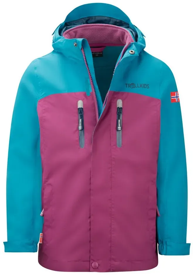 lieferbar-in 2-3 Werktagen bei dirTROLLKIDS 3-in-1-Funktionsjacke Bryggen Wasserdicht, winddicht und atmungsaktiv blau|rosa 116 (5-6J)