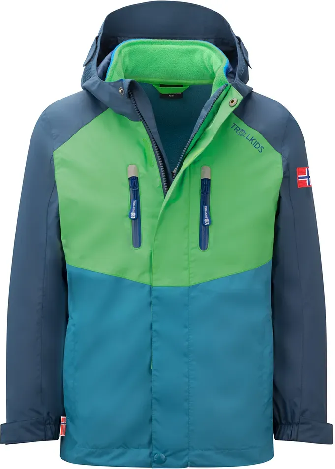 lieferbar-in 2-3 Werktagen bei dirTROLLKIDS 3-in-1-Funktionsjacke Skanden Wasserdicht blau 116 (5-6J)