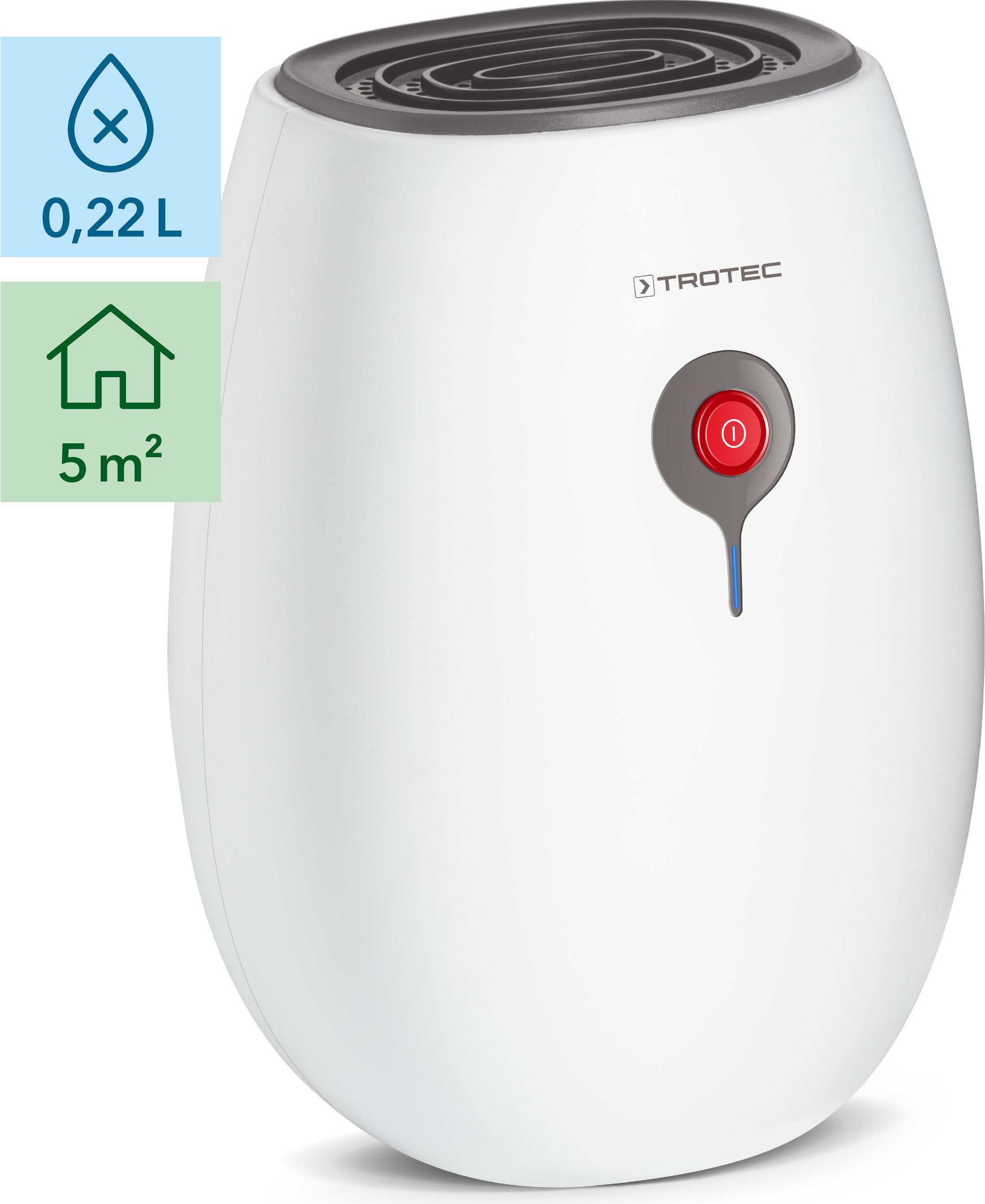 lieferbar-in 2-3 Werktagen bei dirTROTEC Luftentfeuchter TTP 2 E, für 12 m3 Räume, Entfeuchtung 0,22 l/Tag, Tank 0,50 l, Peltier-Luftentfeuchter
