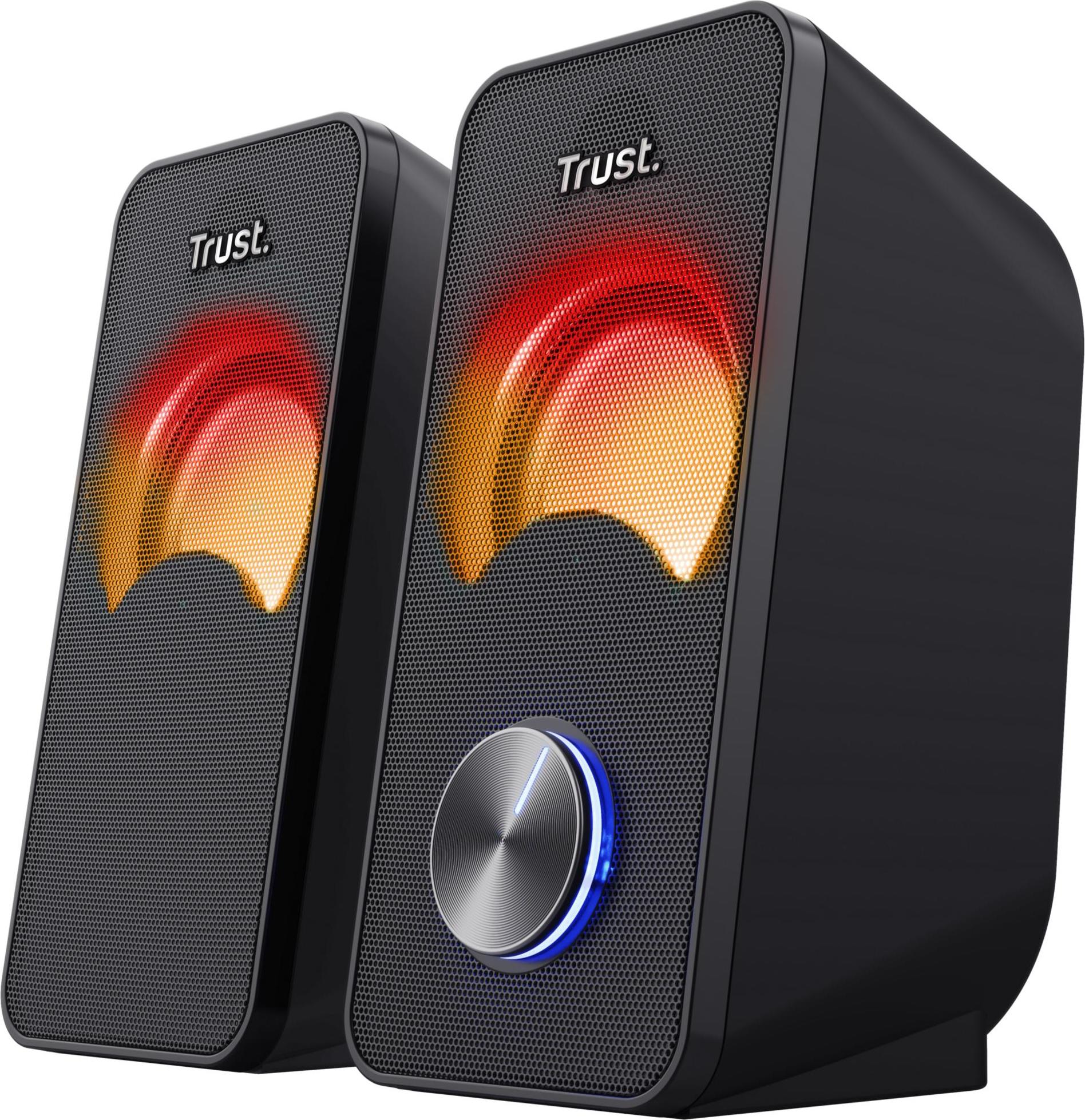TRUST - EAN: 8713439201796 - Design-Lautsprecherset / satter Sound & tiefe Bässe / 28 W Spitzenleistung (14 W RMS) - bei notebooksbilliger.de - aus Yadore Produktdaten Dieses Trust Arys 2.0 PC Lautsprecher Set mit RGB LED-Beleuchtung für 29,99 Euro bietet eine ansprechende Optik und gute Funktionalität. ![]() kaufland.d e Trust Arys 2.0 PC Lautsprecher mit RGB LED-Beleuchtung, 12 W (6 W RMS), USB-Betrieb Kompaktes Lautsprecherset, Lautstärkeregelung, 3,5 mm AUX Klinke, Computer Boxen für Laptop - Schwarz 23120