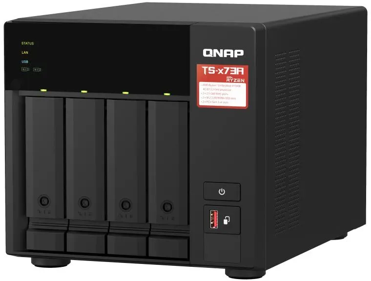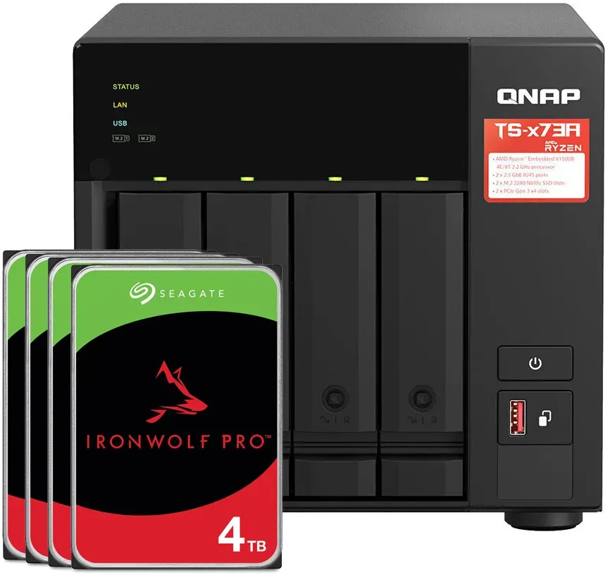 Zustand: Neu - Geräte Network Attached Storage (NAS) Geräte - QNAP - TS-473A-8G/32TB-REDPLUS - EAN: 5050914175894 - QNAP TS-473A-8G/32TB-REDPLUS NAS/Speicherserver Tower Ethernet LAN Schwarz V1500B (QNAP TS-473A-8G 32TB [WD RED PLUS] 4-Bay NAS; AMD Ryzen V1000 Series V1500B 4C/8T 2,2 GHz; 8 GB DDR4 RAM [2 RAM) x SODIMM Slot. ts; max. 64 GB; optionale ECC-RAM-Unterstützung; 4 x SATA 6 Gb/s Einschübe; 2 x M.2 NVMe PCIe Gen3 SSD Steckplätze; 2 x 2,5 GbE LAN; optionale 10 GbE; 2 x PCIe 3.0 x 4 Steckplätze; USB 3.2 Gen2 Typ-A- Typ-C-Anschlüsse TS-473A-8G/32TB-REDPLUS - Verkäufer: CyberTech_Lippetal im amazon.de Marketplace Dieses Angebot von store.ctn-systeme.de bietet eine sehr hohe Speicherkapazität von 64TB, perfekt für professionelle Anwender oder große Datenmengen. ![]() ![]() Qnap TS-473a-8G inkl. 64TB (4x 16TB)