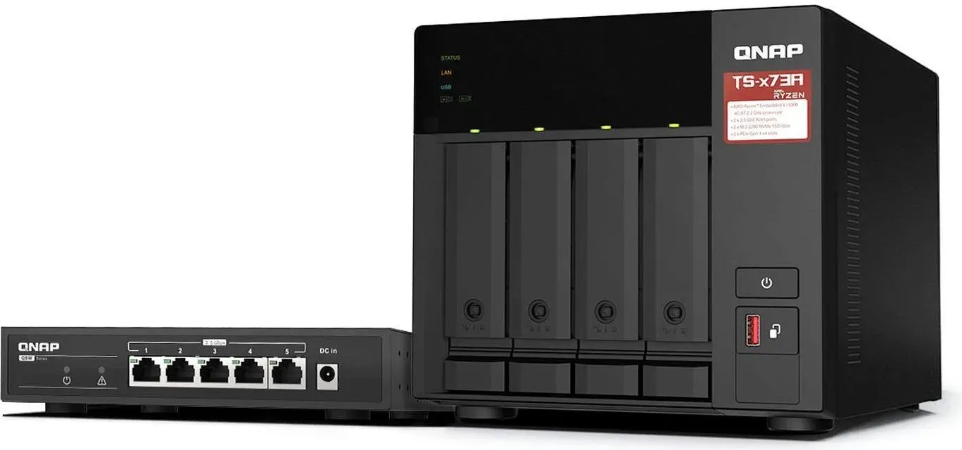 QNAP - EAN: 4713213518847 - QNAP TS-473A-8G (0 TB) (TS-473A-8G) - bei galaxus.de - aus Yadore Produktdaten Dieses Bundle von billiger.de enthält zusätzlich einen 2,5GbE Switch, was für schnellere Netzwerkverbindungen sorgt und ein gutes Preis-Leistungs-Verhältnis bietet. ![]() ![]() QNAP TS-473A-SW5T TS-473A-8G NAS System + QSW-1105-5T Switch