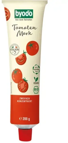 13.95 /kg - Kategorie: Würzsaucen - Byodo - GTIN:4018462603604 - Doppelte Konzentration für ein vielfaches an Genuss. Das verspricht das Byodo Tomatenmark Doppelfrucht in der praktischen und zu 100% recycelten Tube. Der intensive Geschmack sonnenverliebter, italienischer Tomaten wurde in dem leckeren Bio-Tomatenmark herrlich eingefangen und gibt vielen Speisen eine wunderbar fruchtige Note. - 2,79 Euro bei naturPur - gefunden von billiger.de Ein 3er-Pack von Gut&Günstig, eine preiswerte Option für den Vorrat. ![]() ![]() Gut&Günstig Tomatenmark dreifach konzentriert 3er Pack (3x200g Tube) + usy Block