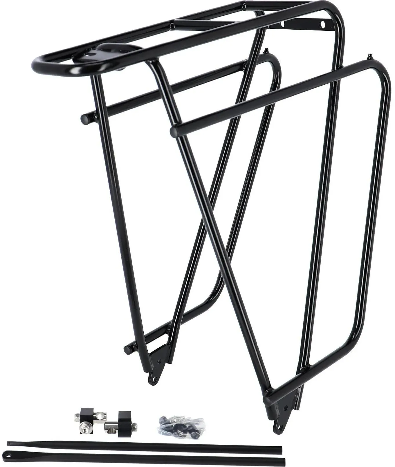 tubus - EAN: 4036823920894 - Racktime Gepäckträger Logo ClassicGepäckträger Tubus Logo Classic, schwarz, 29' - Der Racktime Gepäckträger Logo Classic ist speziell für Reisende konzipiert, die Wert auf Funktionalität und Stabilität legen. Die obere Gepäckebene ist besonders schmal gestaltet, bietet aber dennoch genügend Platz und Halt für Zelt, Matte und Schlafsack. Durch die zweite Reling, an der die Taschen eine Etage tiefer hängen, wird der Schwerpunkt gesenkt und die Fahrstabilität erhöht. In Kombination mit dem TARA Lowrider entsteht das ideale Setup für Fernreisen. Der Gepäckträger ist auch für besonders kurz gebaute Rahmen geeignet. Eine besondere Eigenschaft dieses Modells ist der integrierte Taschenstopper, der verhindert, dass die Seitentaschen verrutschen. Gefertigt aus robustem 25CrMo4 Material, verspricht der Logo Classic eine hohe Langlebigkeit und Tragfähigkeit. Er ist die perfekte Wahl für alle, die einen zuverlässigen und gut durchdachten Gepäckträger für ihre Touren suchen. Lieferumfang:Marke: Rac... - bei fahrrad-xxl.de - aus Yadore Produktdaten Dieser schwarze Gepäckträger für 26-28 Zoll Räder bietet ein gutes Preis-Leistungs-Verhältnis bei Decathlon. ![]() Tubus Gepäckträger Logo Classic schwarz, 26-28' schwarz No Size