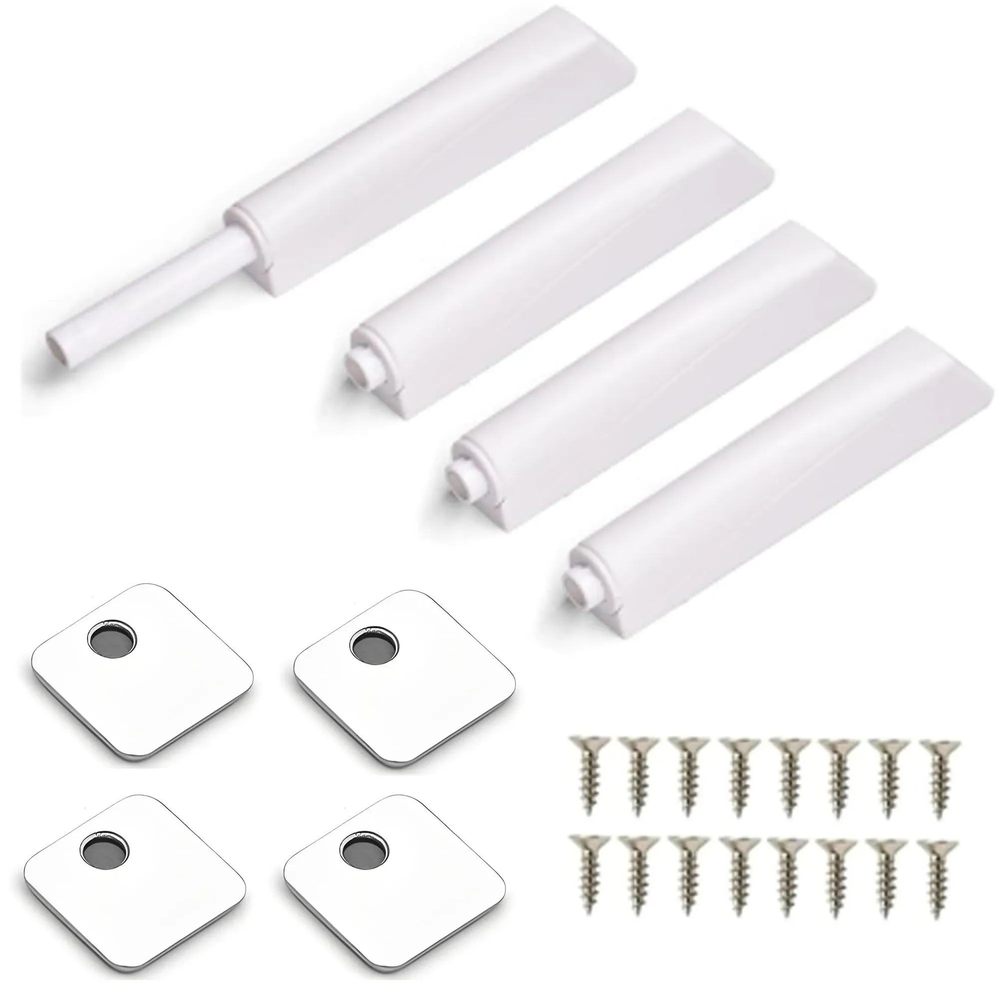 Auf Lager Versand durch Amazon4 Stück Push to Open Türöffner Weiß, Nachrüsten Softclose, Türdämpfer Softclose, Magnetschnäpper Dämpfer für Schranktüren, Magnet türschließer Schranktür, Mit 3M-Klebeband, 16 Stück Schrauben
