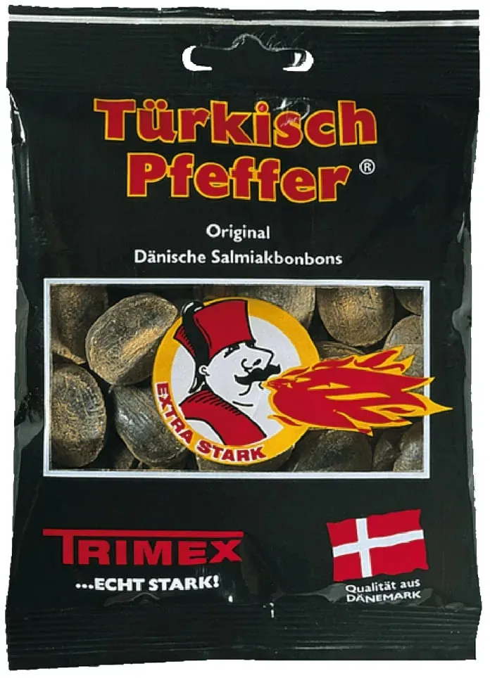 Kategorie: Sonstige Süßigkeiten - PHARMA PETER - GTIN:4002318001010 - Trimex türkischer Pfeffer-Ammoniak-Candies 100 g:\ \ Trimex türkischer Pfeffer-Ammoniak-Candies sind starke Salmiak-Likör-Süßigkeiten mit einem feurigen überraschungseffekt, hergestellt mit Ammoniumchlorid und Lakritze. Hoch in Zucker (61 g pro 100 g), niedrig in Fett und nur für Erwachsene geeignet. - 1,19 Euro bei Joybuy - gefunden von billiger.de ![]() ![]()