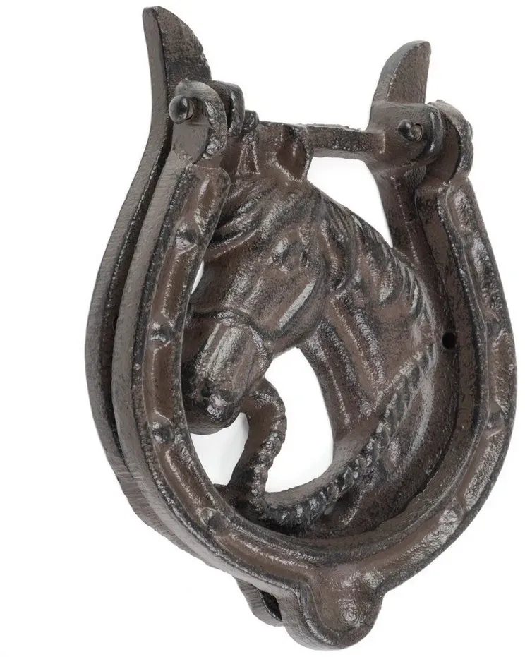 lieferbar-in 4-5 Werktagen bei dirMoritz Dekoobjekt Türklopfer Pferdekopf Hufeisen Gusseisen Antik-Look
