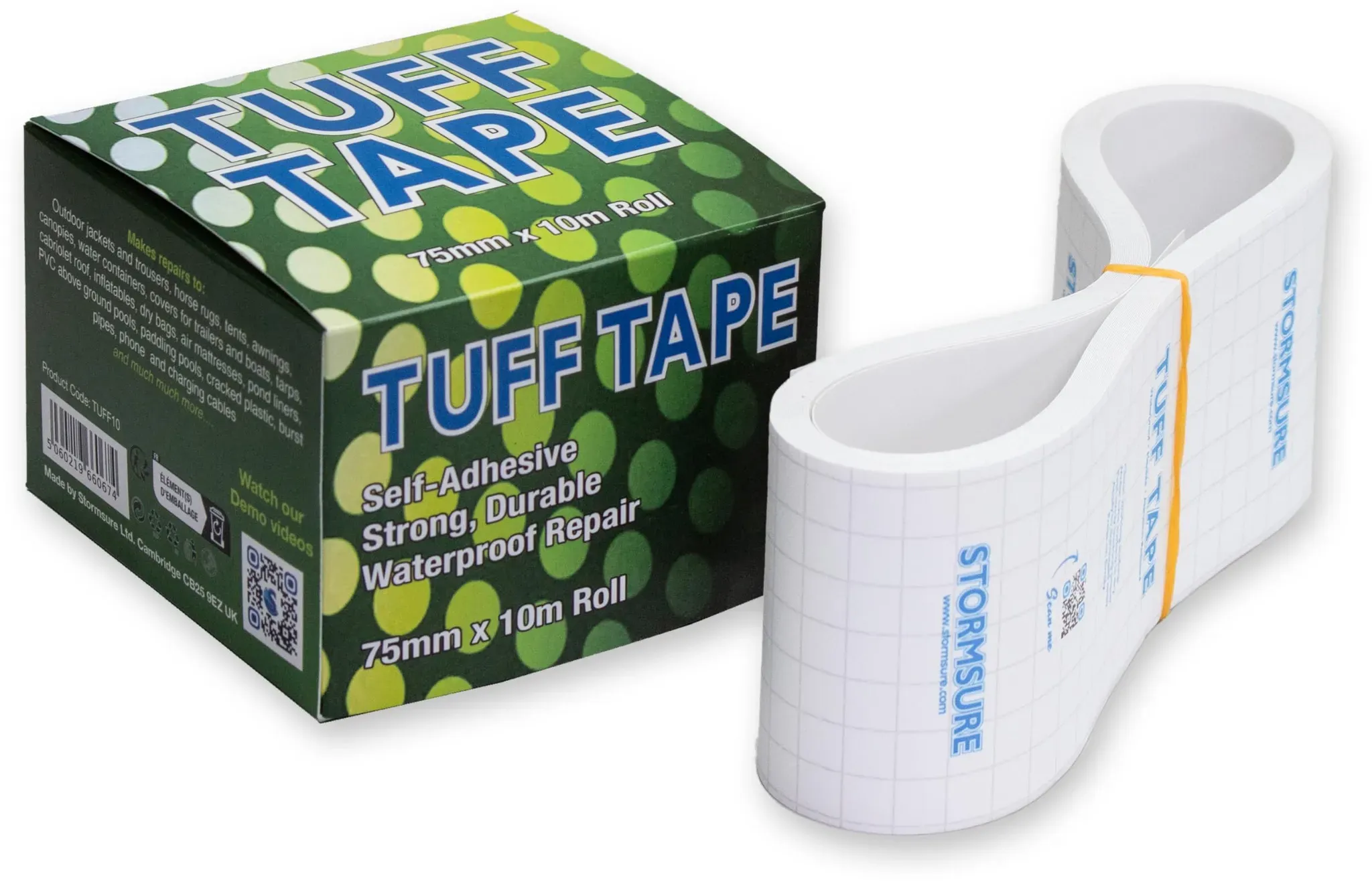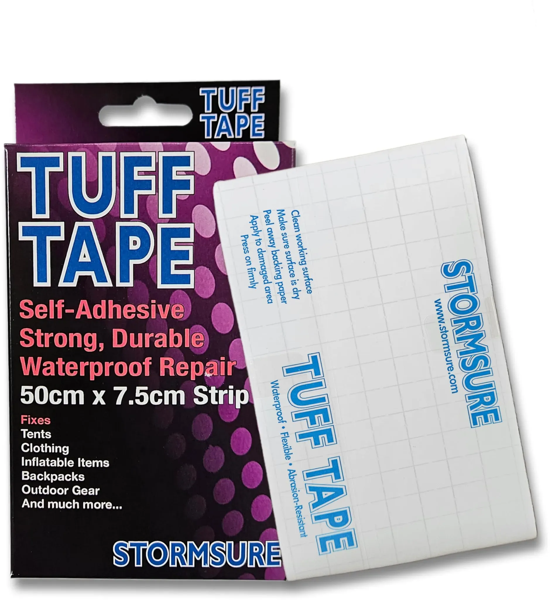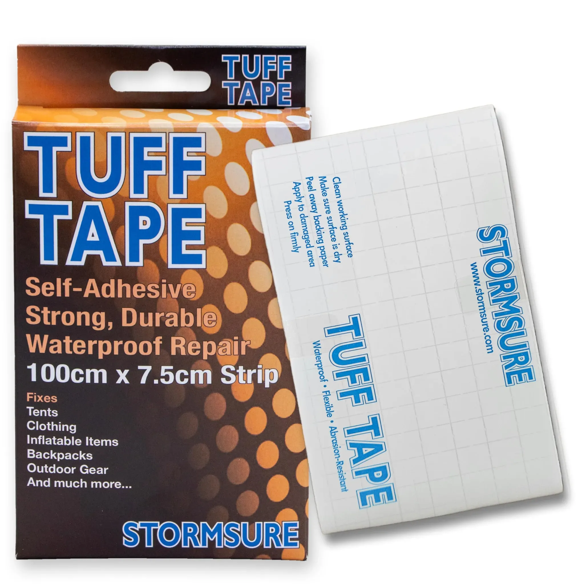 Kategorie: Klebeprodukte - TUFF Tape - GTIN:5060219664122 - Tuff-Tape ist ein sehr starkes, transparentes selbstklebendes, wasserdichtes Klebeband, das als einzelne, vorgeschnittene Flicken und Streifen in verschiedenen Formen und Größen verkauft wird. TUFF Tape besteht aus einer dünnen, aber sehr robusten PU-Folie mit druckempfindlichem Klebstoff und Trägerpapier auf der Rückseite. Es ist wasserdicht und luftdicht. Es ist sehr abriebfest und sehr schwer zu reißen oder zu durchstoßen. Es dehnt sich und ist elastisch und kann sowohl Hitze als auch extremer Kälte standhalten, ohne alle nützlichen Eigenschaften zu verlieren. Das Tuff Tape ist sehr stark und kann Gegenstände zusammenbinden, indem Sie das Band um den Artikel ziehen und die Elastizität verwenden, um die Stücke fest zu ziehen. Wenn Tuff-Klebeband auf Kleidung aufgetragen wird, durchläuft es regelmäßige Waschmaschinen-Zyklen. Verwenden Sie Tuff-Klebeband, um Risse in wasserdichter Kleidung, gerissenen Netzen und Stoffen, aufblasbaren Matratzen, Wasser-aufblasbaren, Strandspielzeug, Teichfolien, Kanus und Rippen, Zelten und Markisen, Segel und Drachen, Wathosen, rissige Eimer und andere Kunststoffbehälter, PVC, Gummi schnell zu reparieren. Sogar Schnitte an den Fingern Anleitung: Stellen Sie sicher, dass die Oberfläche vor der Verwendung sauber und trocken ist. Schneiden Sie ein Stück Tuff-Klebeband für Ihre Reparatur mit einer hochwertigen Schere oder einer scharfen Skalpellklinge. Ziehen Sie das Trägerpapier ab. ... Dieser 1m Streifen ist eine preiswerte und flexible Option für schnelle, wasserdichte Reparaturen an verschiedenen Gegenständen. ![]() ![]() TUFF Tape Reparaturband 1m Streifen - Vielseitig, Selbstklebend, Wasserdicht & Flexibel - Ideal für Reparaturen an Outdoor-Ausrüstung, Kleidung & Mehr