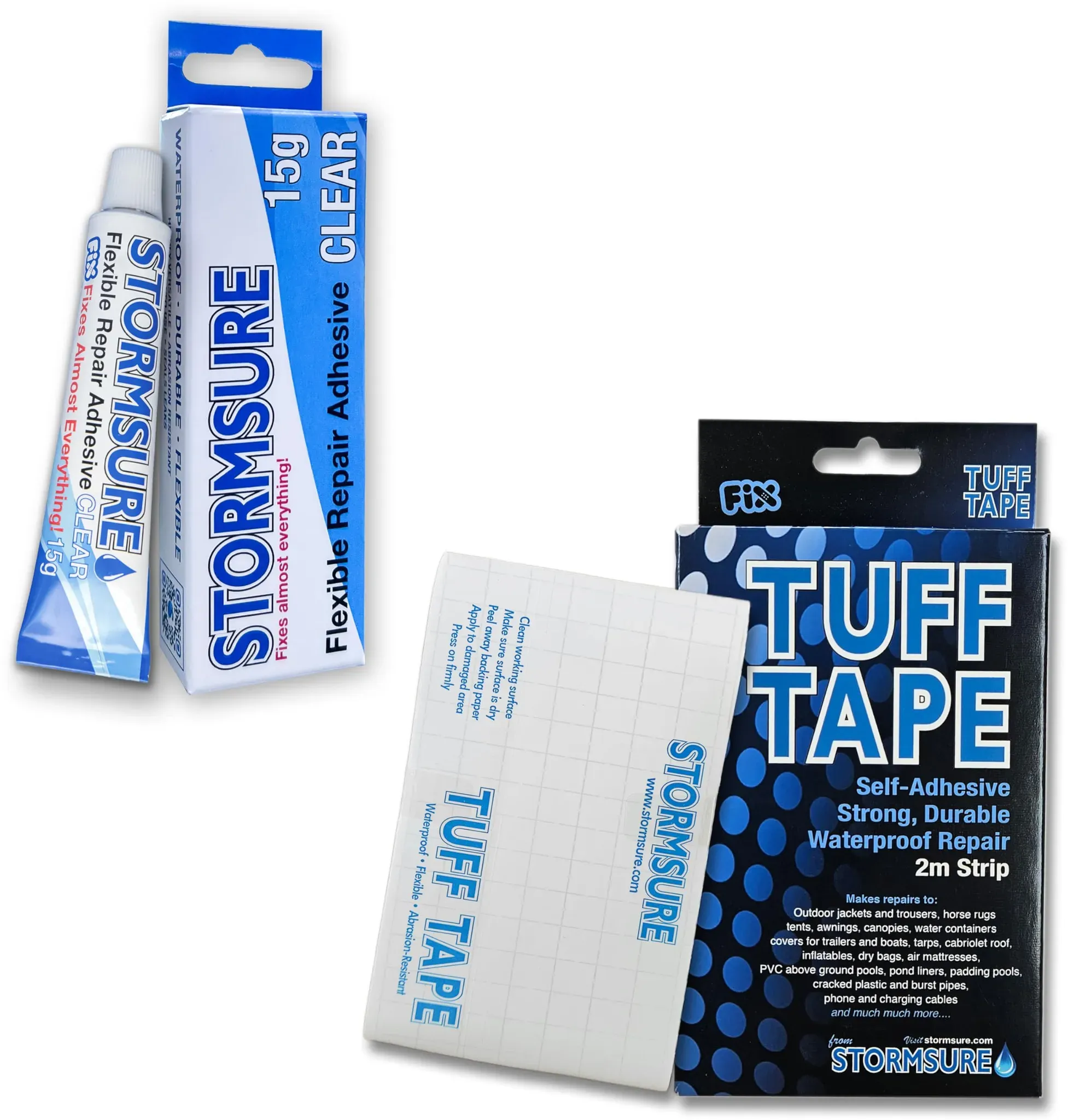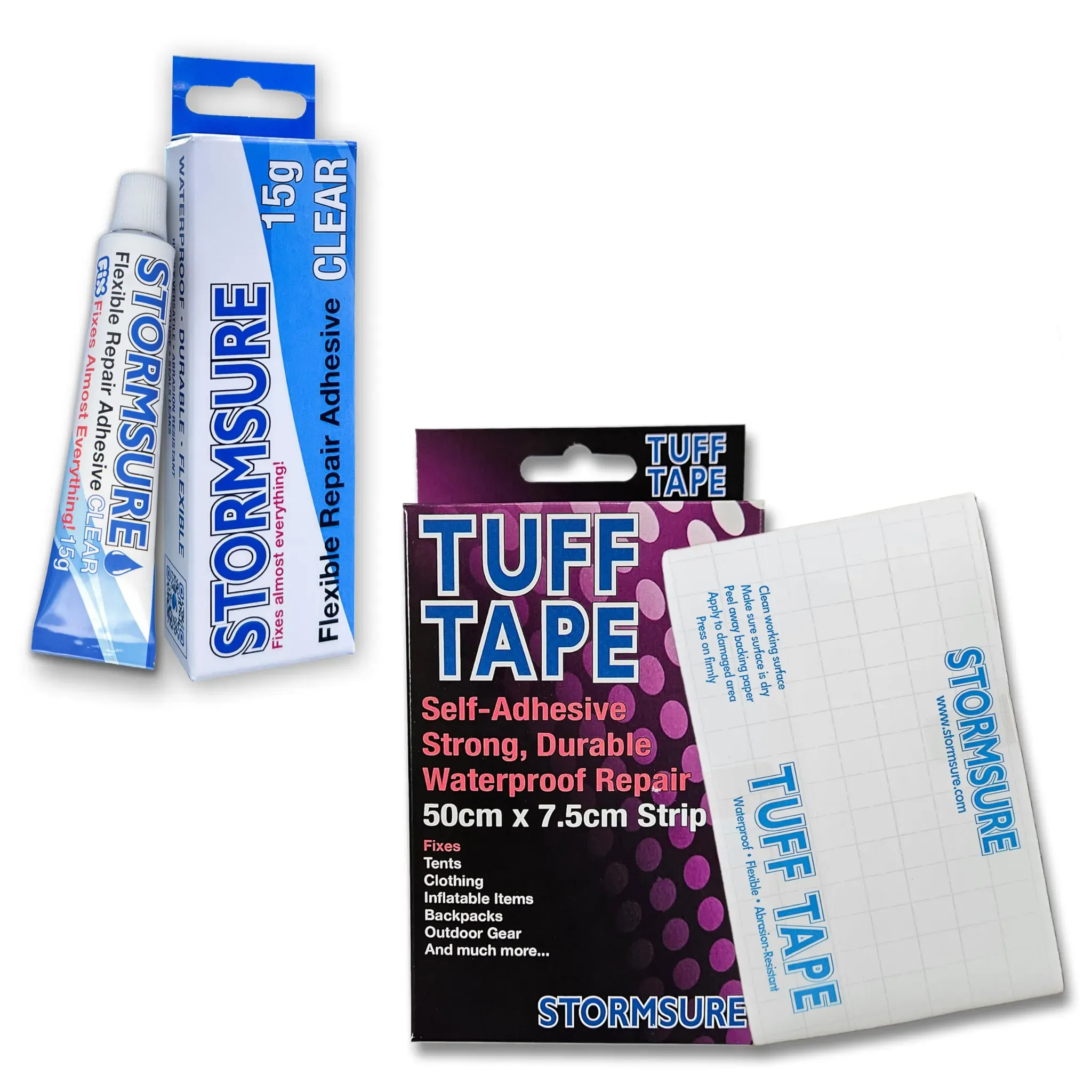 Zustand: Neu - Reparatur-Sets Zelt-Reparatur-Sets - Stormsure - TUFF1.0 - EAN: 5060219660711 - Vielseitige Reparaturen: Ideal zum Ausbessern von Rissen in Zelten, Kleidung, Aufblasartikeln und mehr. Bietet eine starke, dauerhafte Lösung. Langlebig und wasserdicht: Entwickelt, um Wetter, Wasser und Verschleiß zu widerstehen und sich daher perfekt für den Einsatz im Innen- und Außenbereich zu eignen. Flexibel und transparent: Passt sich der Form des zu reparierenden Materials an und hat eine klare Oberfläche, die sich nahtlos in jedes Objekt einfügt. Einfach zu verwenden: Für eine schnelle, effektive Reparatur einfach auf die passende Größe zuschneiden, abziehen und aufkleben. Keine zusätzlichen Werkzeuge oder Näharbeiten erforderlich. Vielseitige Reparaturen: Ideal zum Ausbessern von Rissen in Zelten, Kleidung, Aufblasartikeln und mehr. Bietet eine starke, dauerhafte Lösung. - 9 Händler im amazon.de Marketplace Dieses Bundle kombiniert Reparaturkleber und Tuff Tape für vielseitige und langlebige Reparaturen an verschiedenen Materialien. ![]() ![]() Stormsure Flexibler Reparaturkleber (15g) - Klar + TUFF Tape Reparaturband (0,5m) - Wasserdichtes und Langlebiges Reparatur-Bundle