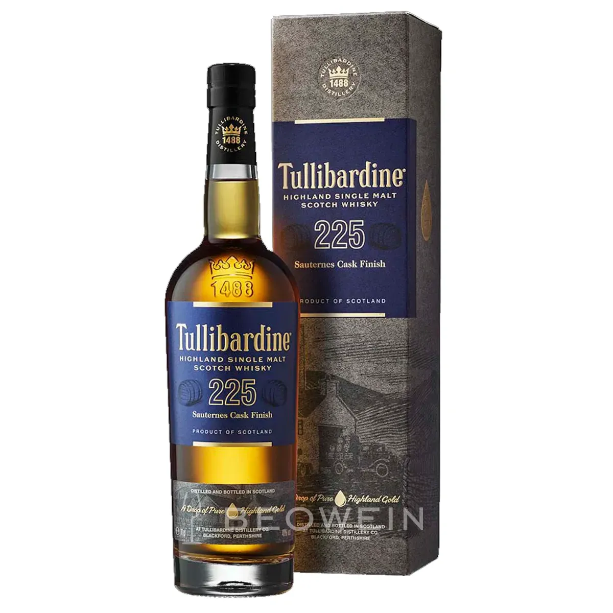 8 Händlerangebote bei billiger.de - Kategorie: Whisky - Tullibardine - Tullibardine 225 Sauternes ist ein Single Malt Scotch Whisky aus der Tullibardine Brennerei im schottischen Dorf Blackford in Perthshire. Die Brennerei wurde 1949 auf dem Gelände einer ehemaligen Brauerei gegründet und produziert seither Whisky. Im Jahr 2003 wurde die Brennerei vor der Schließung gerettet, als ein Team unabhängiger Investoren unter der Führung des ehemaligen Investmentbankers Michael Beamish sie übernahm. Seitdem hat die Tullibardine Brennerei an Erfolg gewonnen und viele Auszeichnungen für ihre Whiskys erhalten. br br Der Tullibardine Sauternes Finish erhält vor der Abfüllung eine zusätzliche Reifung in Sauternes-Weinfässern. Diese Fässer stammen aus dem renommierten Chateau Suduiraut und haben ein Fassungsvermögen von 225 Litern, worauf die Zahl 225 hinweist. Die Nachreifung in diesen Fässern dauert 12 Monate und trägt maßgeblich zur Entwicklung des Whiskys bei. br br Diese zusätzliche Reifezeit verleiht dem Tullibardine Sauternes Finish seine charakteristische, intensive goldene Farbe sowie eine bemerkenswerte Tiefe und Komplexität im Geschmack. br br Farbe: Gold. br Nase: Zitrone, Piment, Noten von Vanille, Kakaobutter und schwarzem Pfeffer. br Geschmack: Cremig, fruchtig, scharf, Noten von kandierten Orangen, Hauch von getrockneter Ananas und weißer Schokolade. br Abgang: Land anhaltend, süß, würzig. - GTIN:5060074861308 Der Tullibardine Burgundy Finish ist eine weitere interessante Fassreifung, die dem Whisky eine besondere Note verleiht. ![]() ![]() Tullibardine Burgundy Finish 0,7 l