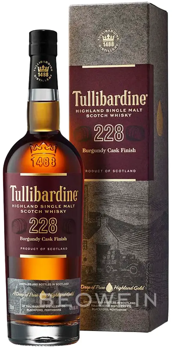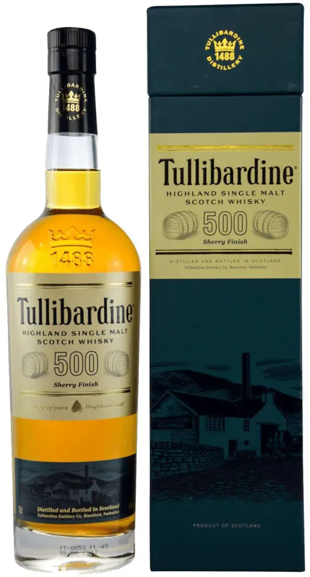 Kategorie: Whisky - Tullibardine - GTIN:5060074861261 - Highland Single Malt Scotch Whisky, 43%vol schöne rotgoldene Farbe direkt von der Reife in Rotweinfässern Im Duft Rote Kirschen und Vanille, leichte Schokoladen-Aromen und Türkischer Honig Eine cremige Fülle mit Spuren roter Sommerfrüchte, mehr Schokolade Hersteller: Tullibardine Distillery Company Ltd., Stirling Street, Blackford, Perthshire, PH4 1QG, Scotland Inverkehrbringer: Terroirs Distillers, Artisanal Brands, BP 49, 71150 Chagny, France - 30,50 Euro bei Beowein - gefunden von billiger.de Der Tullibardine 500 Sherry Finish ist eine beliebte Wahl für Liebhaber von Sherry-gereiften Whiskys und bietet ein gutes Preis-Leistungs-Verhältnis. ![]() ![]() Tullibardine 500 Sherry Finish - Single Malt Scotch Whisky