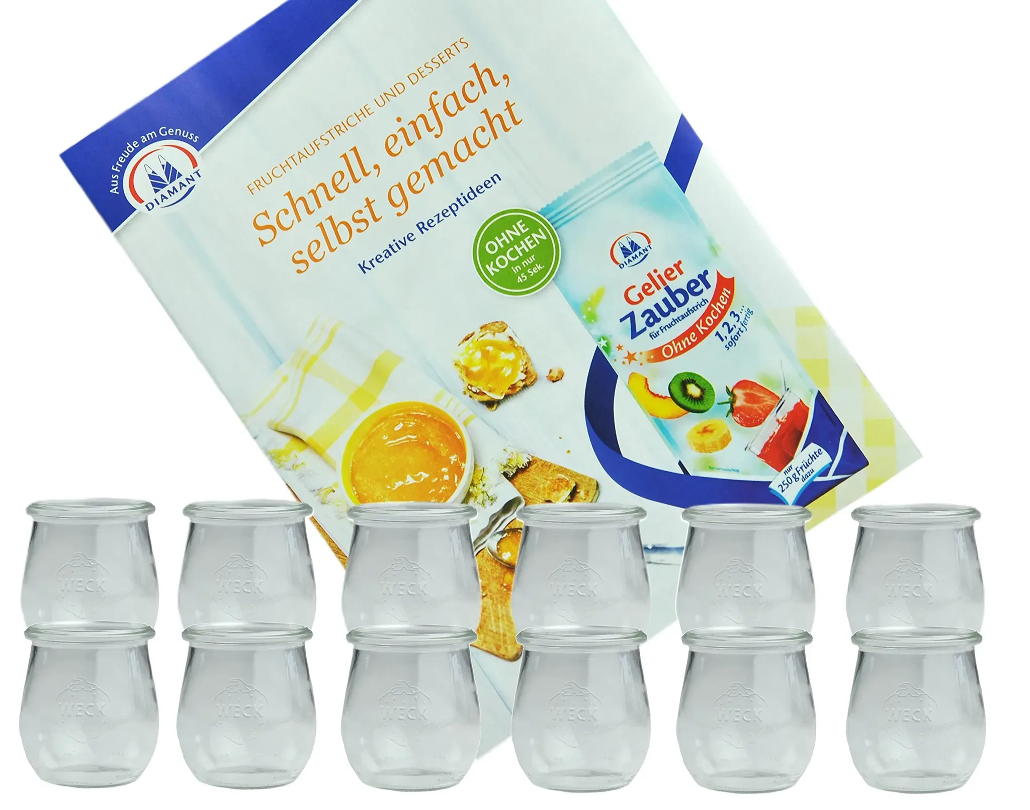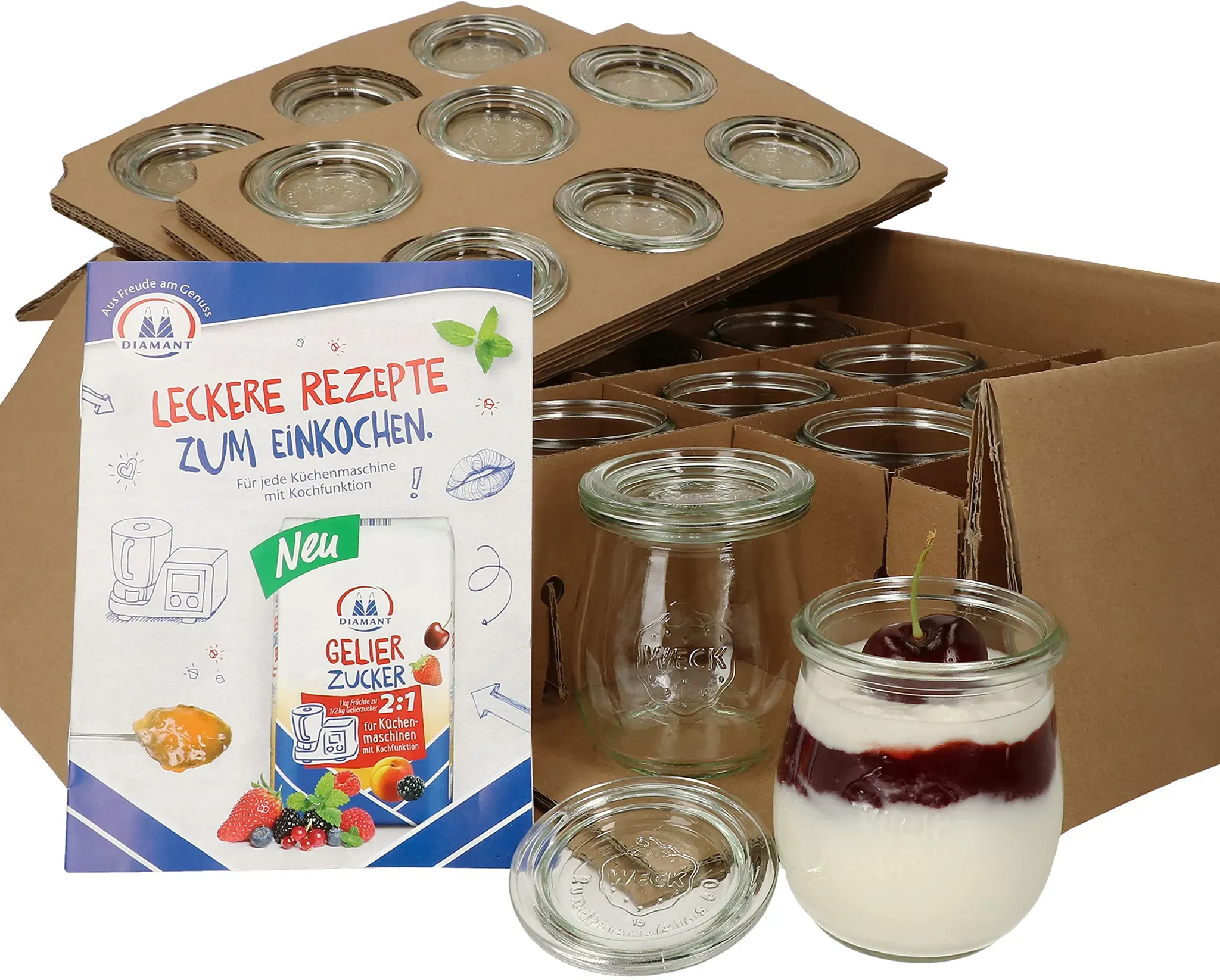 Kategorie: Vorratsgläser - Mambocat - GTIN:4250857227419 - BESTE KONSERVIERUNG Die Einweckgläser Tulpenform sind besonders ideal zum klassischen Einkochen von Obst und Gemüse geeignet. Auch perfekt zum Konservieren von Marmeladen Desserts Dips Pasten uvm OFENFESTE EINMACHGLäSER Die Tulpen Weckgläser sind backofentauglich und daher auch als Backgläser oder Kuchengläser zum Backen von zB Kuchen oder Muffins geeignet I Auch Einfrieren ist möglich WECK TULPENGLäSER SET Das praktische Dessertgläser Set beinhaltet 12 Weck-Gläser Tulpenform ohne Deckel mit 220ml Füllmenge I Zubehör wie Glasdeckel Weck Klammern Einkochringe separat erhältlich GRATIS REZEPTHEFT Zusätzlich zu dem Weck Glas Set erhältst Du kostenlos das Diamant-Zucker Gelierzauber Rezeptheft mit den besten Rezepten für leckere Nachtische Kompotts und beliebte Marmeladen MAMBOCAT als Spezialist für Deine Haushaltswaren I Verschiedene Weck Einmachgläser Sets in allen Formen und Größen I Aufbewahrung - Gläser - Porzellan - Tonware - Alles was Dein Herz begehrt - 19,99 Euro bei Amazon Marketplace Home - gefunden von billiger.de Dieses 12er-Set mit Glasdeckeln und Rezeptheft ist ein attraktives Paket für Einsteiger und erfahrene Einwecker gleichermaßen. ![]() ![]() MamboCat 12er Set Weckgläser mit Glasdeckel 220 ml I Original Weck Tulpenglas Joghurtglas, Dessertglas I Einweckgläser mit Deckel für Dips Aufstrich I inkl. Diamant-Zucker Gelierzauber Rezeptheft