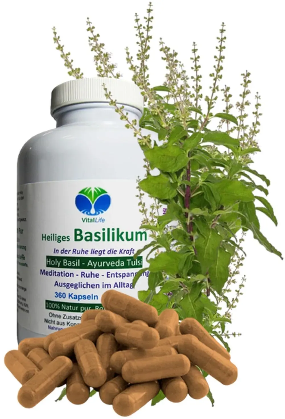 Kategorie: Nahrungsergänzungsmittel - VitalLife - GTIN:4031491267005 - Tulsibasilikum wird alternativ zur Unterstützung einer gesunden normalen Verdauung, bei Stress, in den Wechseljahren und für den Erhalt eines gesunden normalen Cholesterinspiegels verschrieben. INDISCHES Basilikum wird in der ayurvedischen Volksmedizin mit innerer Ruhe, Entspannung, Meditation und Harmonie der Chakras und Doshas gleichgesetzt und als Balsam für die Seele geschätzt. Indisches BASILIKUM (Tulsibasilikum, Holy Basil, Heilendes Königskraut), in Rohkostqualität (hohe Bioverfügbarkeit). OHNE ZUSATZSTOFFE. OHNE FüLLSTOFFE. 100% NATUR PUR! Mikrofein kalt vermahlen. Kein Extrakt. Nicht aus Konzentrat. NICHT chemisch hochdosiert. Lactose- & glutenfrei. Hergestellt und abgefüllt in Deutschland. VERZEHREMPFEHLUNG und VEGANE KAPSELN (siehe Bilder links und Produktbeschreibung unten). - 14,90 Euro bei Amazon Marketplace Health & Personal Care - gefunden von billiger.de Dieses Produkt ist ein beliebtes Standardprodukt mit einer guten Dosierung und einem fairen Preis. ![]() ![]() morsan nutraveda Tulsi-Kapsel 500 mg. 60 Veganer. Einheiten | Basil (Ocimum sanctum) Extrakt-Kapseln für Männer und Frauen | Ayurvedische Kräuterergänzung/Heilmittel | 10:1 Stärke (1 Flasche mit 60 Kapseln)