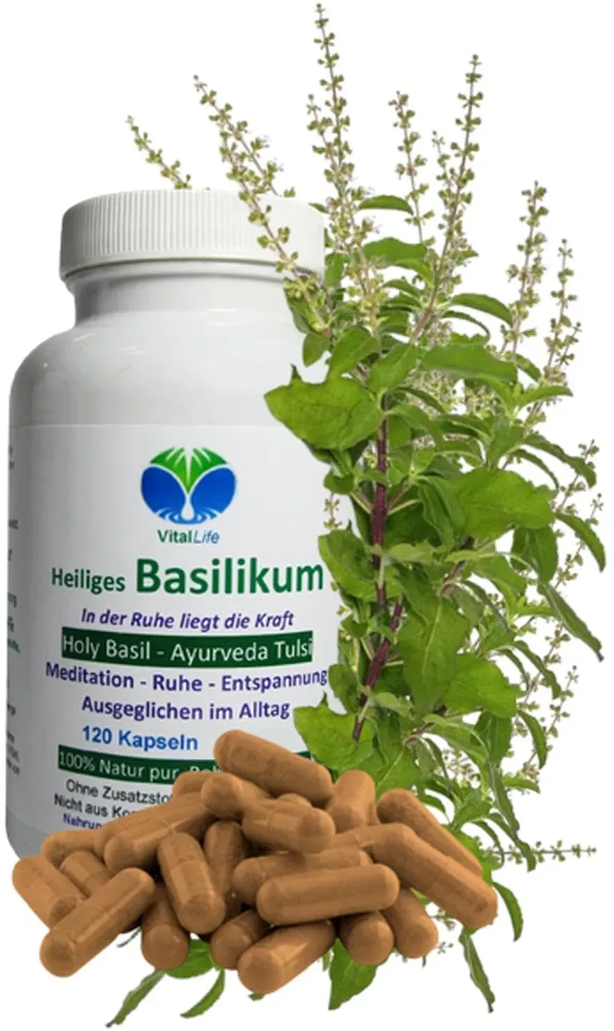 395.20 /1kg - Kategorie: Nahrungsergänzungsmittel - Bioherba - GTIN:3800223413482 - Produktinformationen Bezeichnung des Nahrungsergänzungsmittels , Vitamine, Produktdetails Darreichungsform , Nahrungsergänzungsmittel, Zutaten , Indisches Basilikum (Ocimum tenuiflorum L., Kraut, Pulver), Gelatine, Vitamin B12 (Cyanocobalamin) , Zusatzstoffe , nicht relevant, Aufbewahrungshinweise , Die angegebene empfohlene tägliche Verzehrsmenge darf nicht überschritten werden. Nahrungsergänzungsmittel sind kein Ersatz für eine ausgewogene und abwechslungsreiche Ernährung sowie eine gesunde Lebensweise. Nicht empfohlen für Kinder, Jugendliche, schwangere oder stillende Frauen. Außerhalb der Reichweite von kleinen Kindern lagern. Kein Bio-Produkt gemäß VO (EU) 2018/848. Nicht verwenden, wenn das Siegel gebrochen ist. An einem kühlen und trockenen Ort lagern. Vor direkter Sonneneinstrahlung schützen., Allergene , nicht relevant, Hinweise Warnhinweise , Die angegebene empfohlene tägliche Verzehrsmenge darf nicht überschritten werden. Nahrungsergänzungsmittel sind kein Ersatz für eine ausgewogene und abwechslungsreiche Ernährung sowie eine gesunde Lebensweise. Nicht empfohlen für Kinder, Jugendliche, schwangere oder stillende Frauen. Außerhalb der Reichweite von kleinen Kindern lagern. Kein Bio-Produkt gemäß VO (EU) 2018/848. Nicht verwenden, wenn das Siegel gebrochen ist. An einem kühlen und trockenen Ort lagern. Vor direkter Sonneneinstrahlung schützen., - 9,88 Euro bei OTTO - gefunden von ... Dieses Produkt bietet eine gute Menge an Kapseln für einen moderaten Preis und ist eine gute Option für den regelmäÃ?igen Gebrauch. ![]() ![]() VitalLife TULSIBASILIKUM 120 Kapseln Heiliges TULSI-BASILIKUM Holy-BASIL Ayurveda "indisches Königskraut" - Meditation Ruhe Entspannung - Ausgeglichen im Alltag. NATUR pur. OHNE ZUSATZSTOFFE. 26700-120