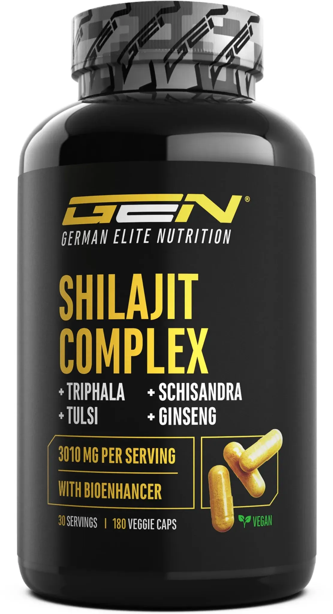 Kategorie: Nahrungsergänzungsmittel - GEN GERMAN ELITE NUTRITION - GTIN:4260601199794 - EINZIGARTIGER KOMPLEX: GEN Shilajit Complex vereint ausgewählte Pflanzenextrakte aus Ayurveda und traditioneller chinesischer Medizin in einer einzigartigen, hochdosierten Rezeptur, speziell entwickelt für die Anforderungen moderner Lebensweisen. Eine Tagesportion von 6 Kapseln liefert über 3010 mg Wirkstoffe, darunter 1000 mg reines Shilajit Extrakt 10:1 mit 50% Fulvinsäure & 12% Huminsäure. HOCHKONZENTRIERTE EXTRAKTE: Das enthaltene Shilajit liefert 500 mg Fulvinsäure und 120 mg Huminsäure, zwei bioaktive Substanzen, die traditionell für ihre vielseitigen Eigenschaften geschätzt werden. Ergänzt wird der Komplex durch Triphala-Extrakt (700 mg) mit einem Anteil von 280 mg Tanninen, Tulsi-Extrakt (700 mg), Schisandrafrucht-Extrakt (500 mg) mit 50 mg Schisandrine sowie Ginseng-Extrakt (100 mg) mit 20 mg Ginsenosiden. Ein natürlicher Extrakt aus schwarzem Pfeffer rundet die Rezeptur ab, mit 9,5 mg Piperin, das die Aufnahme der pflanzlichen Wirkstoffe im Körper gezielt unterstützt. DIE NATüRLICHE POWER DES HIMALAYAS: Unser Shilajit wird aus Höhlen, Felsspalten und Gesteinsbrocken in den südlichen Ausläufern des Himalaya gewonnen, einer Region, die für besonders reines und nährstoffreiches Shilajit bekannt ist. Der wertvolle Rohstoff wird sorgfältig zu Pulver verarbeitet und anschließend in vegane Kapseln abgefüllt, um seine natürlichen Eigenschaften zu bewahren. VEGAN & OHNE UNERWüNSCHTE ... Dieses Produkt bietet eine gröÃ?ere Packungseinheit zu einem attraktiven Preis pro Kapsel, ideal für Langzeitnutzer. ![]() ![]() morsan nutraveda Tulsi-Kapseln 500 mg. 60 Veganer. Einheiten | Basil (Ocimum sanctum) Extrakt-Kapseln für Männer und Frauen | Ayurvedische Kräuterergänzung/Heilmittel | 10:1 Stärke (2 Flasche mit 60 Kapseln)
