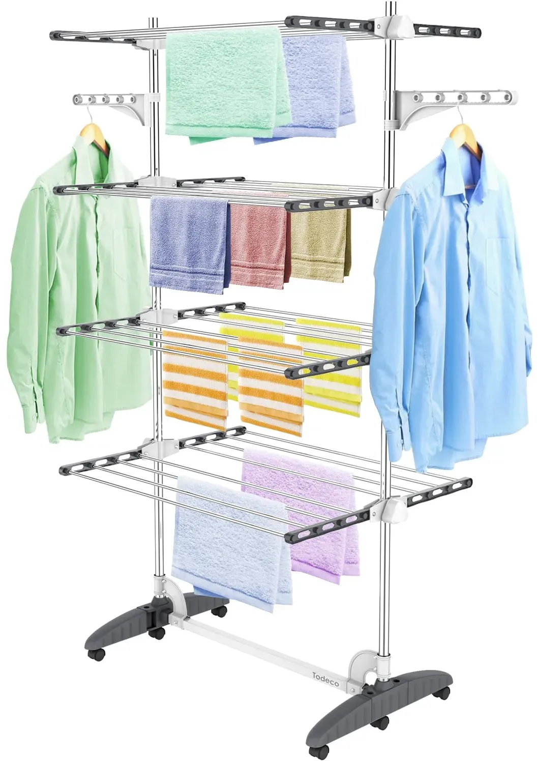 keine Angabe Sofort lieferbar, 3-5 Werktage in_stockTODECO Wäscheständer Turm Klappbar, Wäscheturm 3 Ebenen aus Edelstahlrohre, Turmtrockner mit 6X Rollen, Flügel, Obene Stange, Mobiler Turmwäscheständer für