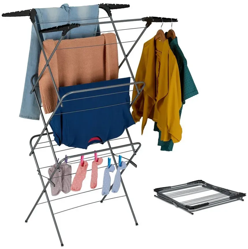 lieferbar-in 2-3 Werktagen bei dirrelaxdays Wäscheständer Turmtrockner faltbar grau|schwarz
