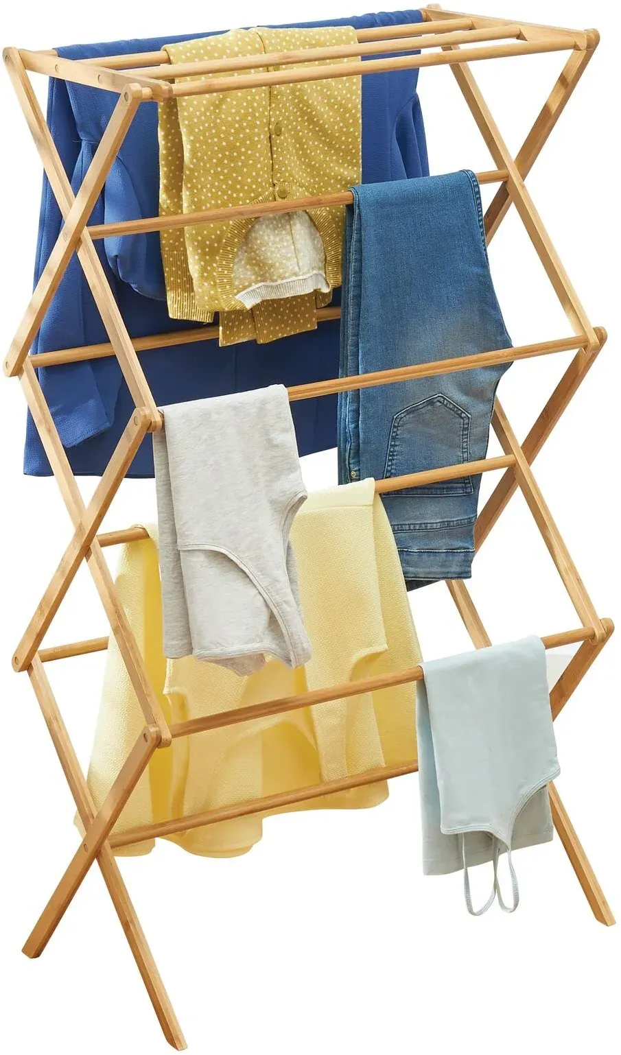 Kategorie: Wäscheständer - Relaxdays - GTIN:4052025508036 - Allgemein Lieferumfang , ohne Deko zusammengebaut, Farbe & Material Farbe , Grau Schwarz, Material , Eisen, Maße & Gewicht Tiefe , 50 cm, Höhe maximal , 138 cm, Belastbarkeit maximal , 10 kg, Breite , 63.5 cm, Gewicht , 2090 g, Höhe , 138 cm, Technische Daten WEEE-Reg.-Nr. DE , 17638816, Ausstattung Ausstattung , klappbare Flügel Bügelhalter, Anzahl Bügelhalter , 4, - 32,99 Euro bei OTTO - gefunden von billiger.de Dieser mDesign Wäschesständer aus Bambus bietet für 42.99 Euro eine umweltfreundliche und stilvolle Alternative. ![]() ![]() MetroDecor mDesign Wäscheständer aus Bambus ausziehbarer Turmtrockner mit 3 Ebenen platzsparender Standtrockner in modernem Design naturfarben