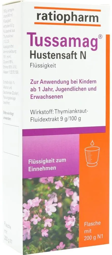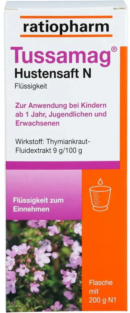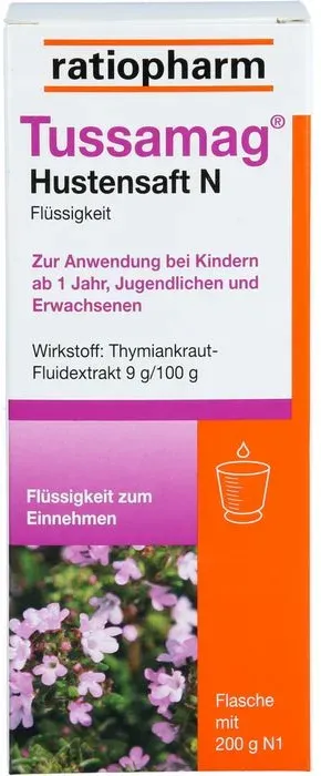 Tussamag 200 META PreisvergleichMit dem Meta-Preisvergleich suchen Sie gleichzeitig bei den großen Preisvergleich Portalen!Jetzt live Suche nach tussamag 200 starten! Tussamag 200 KaufberatungBeim Produkt Tussamag Hustensaft N 200 g handelt es sich um einen pflanzlichen Hustensaft von ratiopharm, der vor allem bei Erkältungskrankheiten der Atemwege, akuter und chronischer Bronchitis sowie Husten eingesetzt wird. Der Wirkstoff ist Thymiankraut-Fluidextrakt, der schleimlösend, entzündungshemmend und bakterientötend wirkt. Der Saft ist zuckerfrei und für Kinder ab 1 Jahr geeignet[1][2][5][7]. Wichtige Punkte, die Sie beachten sollten: