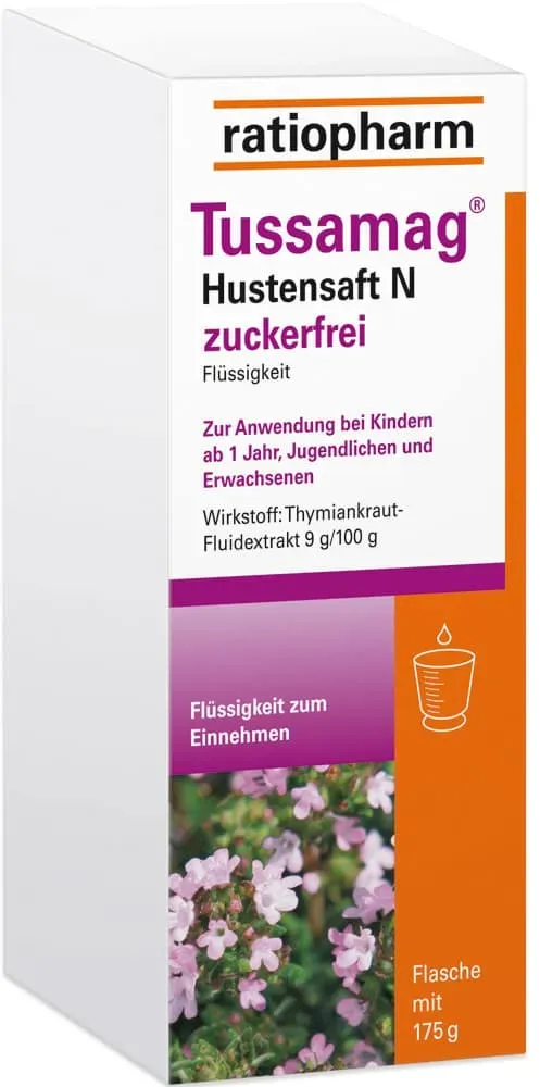 Zustand: Neu - 51,80 € / kg - Erkältung & Grippe Medikamente bei Erkältung - ratiopharm AbZ Pharma GmbH - 04424501 - EAN: 4150044245014 - DER AROMATISCHE HUSTENSAFT: Seit mehr als 10 n hat sich Tussamag Hustensaft mit dem natürlichen Wirkstoff des Thymians als pflanzliches Arzneimittel gegen Husten und Bronchitis bewährt SCHLEIMLÖSER: Hilft bei verschleimtem Husten, die Atemwege zu befreien. Die ätherischen Öle des Thymians entfalten in den Atemwegen ihre Wirkung und lösen zähen Schleim in den Bronchien KRAMPFLÖSEND: Das beliebte Erkältungsmittel wirkt entkrampfend auf die Bronchialmuskulatur. Bei akuter Bronchitis und festsitzendem Husten können die Symptome durch den Hustensaft gelindert werden FÜR DIE GANZE FAMILIE: Durch seinen pflanzlichen Wirkstoff Thymianextrakt ist der bewährte Hustenlöser gut verträglich und bereits für Kinder ab geeignet WOHLSCHMECKEND: Das sanfte Erkältungsmittel schmeckt durch die ätherischen Öle besonders angenehm. Auch als zuckerfreie Variante erhältlich - 8 Händler im amazon.de Marketplace ![]() ![]() Ratiopharm TUSSAMAG Hustensaft N 200 g