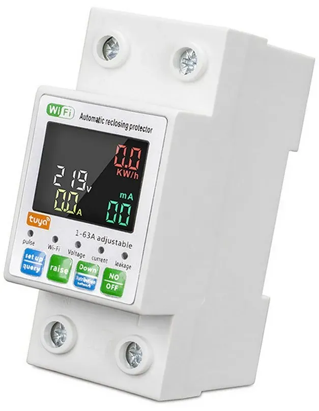 EAN: 8110390722757 - Dieses intelligente 3-Phasen Leistungsschutzschalter mit integriertem WiFi Energiezähler ermöglicht eine umfassende überwachung und Steuerung Ihres Stromnetzes über die Tuya Smart App weltweit und in Echtzeit.Produktvorteile:Umfassende WiFi-Steuerung: Fernzugriff über Tuya Smart App ohne Entfernungsbegrenzung, Anzeige von Spannung, Strom, Leistung, Frequenz, Leckstrom und kumulierter EnergieFarb-LCD-Display: Klar ablesbares Farbdisplay mit intuitiver Benutzeroberfläche für einfache Dateninterpretation direkt am GerätBreiter Messbereich: Spannung von AC 80-400V, Strom von 1-100A, Leistung bis 99999,9 kWh, Frequenz 50/60 HzVielseitiger Schutz: Schutz gegen über- und Unterspannung, überstrom, Phasenungleichgewicht, Phasenausfall, sowie Zwei-Wege-Leistungsmessung und ZeitsteuerungEinfache Montage: Standard DIN35 mm Schienenmontage, kompakte Bauweise mit nur 9x7,5x7,5 cm und leichtem Gewicht (430 g)Anwendung: Ideal für Solaranlagen, Gewerbegebäude, Schulen, Hotels und andere DIN-Schienen-SystemeTechnische Daten:Verbindung über Tuya Smart APP (WiFi 2,4 GHz)Material: flammhemmendes PCNennspannung: AC 380VArbeitsstrom: 1-100AEinstellbare Schutzwerte: über-/Unterspannung, überstrom (1-100A), Zeitverzögerung 1-9999 SekundenUmgebungstemperatur: -30 bis 70 Sicherheitshinweise:Abweichungen in der Farbgebung durch Monitoreinstellungen möglichMessabweichung von 1 3 mm durch manuelle Messung zulässigLieferumfang:1 WiFi intelligenter Leistungsschutzschalter1 ... Ein kostengünstiger FI-Schutzschalter für die DIN-Schiene mit Timer-Funktion und App-Steuerung, der eine gute Balance zwischen Preis und Leistung bietet. ![]() ![]() FI-Schutzschalter, Tuya-DIN-Schienen-WLAN-Schutzschalter mit Timer, Fernbedienung und App, Leitungsschutzschalter FI-Schutzschalter Fehlerstromschutzschalter, 4P, 63A(40A)