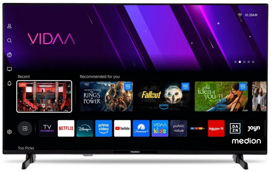 Verfügbarkeit: Auf Lager - EEK: D - Kategorie: Fernseher - Medion - GTIN:4061275240078 - 40-Zoll-Smart-TV mit HD Auflösung, HDR, PVR ready, integr. WLAN, Bluetooth, VIDAA App Store, Disney+, Paramount+ & Amazon Prime Video-App Fernsehen der nächsten Generation: Mit dem Smart-TV von MEDION erleben Sie das Internet im Wohnzimmer: Apps, Streamingdienste, News und vieles mehr! Extra scharf: Mit dem HD Fernseher erleben Sie Ihr TV-Programm in bester Bildqualität! Komfort pur: Fotos und Videos können Sie über den integrierten Mediaplayer ganz einfach am großen Fernsehschirm genießen. Lieferumfang: MEDION LIFE P8402501 MD840101 Smart-TV, Standfüße inkl. Schrauben, Fernbedienung inkl. Batterien (AAA), Bedienungsanleitung - 179,85 Euro bei Amazon Marketplace CE - gefunden von billiger.de Das Medion MD840101 ist ein preiswerter 40-Zoll Full HD Smart TV mit VIDAA TV und 60Hz Display. ![]() ![]() Medion® MD840101 LCD-LED Fernseher (100.3 cm/40 Zoll, 1080p Full HD, VIDAA TV, Smart TV, Full-HD Display 60Hz, P8402501) schwarz