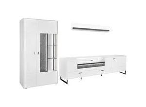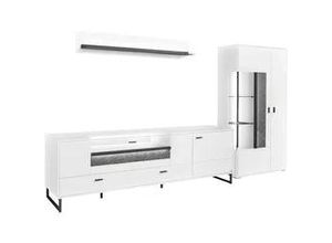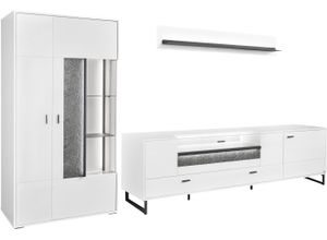 Wohnwände Wohnen Aufbewahren Ordnen Schränke, Kommoden Vitrinen - - Produktdetails: Set beinhaltet: Vitrine, Unterteil, Wandboard, Farbe Material: Material Korpus: Holzwerkstoff, Oberflächenbehandlung Korpus: melaminbeschichtet, Material Türen: Spanplatte, Material Beschläge: Metall, Oberflächenbehandlung Türen: melaminbeschichtet, Material Einlegeböden: Spanplatte, Material Griffe: Metall, Material Füße: Metall, Farbbezeichnung: Weiss matt, Material: Holzwerkstoff, Oberflächenbeschichtung: melaminharzbeschichtet, Farbe Einlegeböden: Weiss matt, Farbe Füße: schwarz-grau, Farbe Griffe: schwarz-grau, Farbe Korpus: Weiss matt, Farbe Türen: Weiss matt, Schrank: Art Schrank: Vitrine, Tiefe Schrank: 37,2 cm, Höhe Schrank: 170,8 cm, Gewicht Schrank: 61 kg, Anzahl Türen Schrank: 2 Stk., Art Türen Schrank: Drehtür, Belastbarkeit Einlegeböden Schrank: 3 kg, Art Schrank 2: TV-Lowboard, Anzahl Schrank 2: 1 Stk., Breite Schrank 2: 214 cm, Tiefe Schrank 2: 50 cm, Höhe Schrank 2: 66,5 cm, Gewicht Schrank 2: 77 kg, Anzahl Türen Schrank 2: 1 Stk., Anzahl Klappen Schrank 2: 1 Stk., Belastbarkeit Einlegeböden Schrank 2: 3 kg, Anzahl Schubladen Schrank 2: 2 Stk., Gesamtbreite Schränke: 317,4 cm, Höhe Füße Schrank: 12 cm, Breite Schrank: 93,7 cm, Regal: Art Regal: Wandboard, Breite Regal: 150 cm, Tiefe Regal: 20,6 cm, Höhe Regal: 24 cm, Gewicht Regal: 11 kg, Belastbarkeit Einlegeböden Regal: 3 kg, Beleuchtung: Art Leuchtmittel: LED-Leuchtmittel, Modellbezeichnung: Deltona, Lichtfarbe: ... ![]() 366994 / DE- Billiger- baur.de TV-Wand 'Deltona', weiß (weiß matt), B:317,4cm H:198cm T:50,2cm, Holzwerkstoff, SET ONE BY MUSTERRING, Kastenmöbel-Sets, Zierelemente aus Sandstein, inkl. Beleuchtung, Gesamtbreite ca. 317 cm