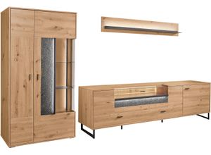 Wohnwände Wohnen Aufbewahren Ordnen Schränke, Kommoden Vitrinen - - Produktdetails: Set beinhaltet: Vitrine, Unterteil, Wandboard, Farbe Material: Material Korpus: Holzwerkstoff, Oberflächenbehandlung Korpus: melaminbeschichtet, Material Türen: Spanplatte, Material Beschläge: Metall, Oberflächenbehandlung Türen: melaminbeschichtet, Material Einlegeböden: Spanplatte, Material Griffe: Metall, Material Füße: Metall, Farbbezeichnung: Eiche Artisan, Material: Holzwerkstoff, Oberflächenbeschichtung: melaminharzbeschichtet, Farbe Einlegeböden: Eiche Artisan, Farbe Füße: schwarz-grau, Farbe Griffe: schwarz-grau, Farbe Korpus: Eiche Artisan, Farbe Türen: Eiche Artisan, Schrank: Art Schrank: Vitrine, Tiefe Schrank: 37,2 cm, Höhe Schrank: 170,8 cm, Gewicht Schrank: 61 kg, Anzahl Türen Schrank: 2 Stk., Art Türen Schrank: Drehtür, Belastbarkeit Einlegeböden Schrank: 3 kg, Art Schrank 2: TV-Lowboard, Anzahl Schrank 2: 1 Stk., Breite Schrank 2: 214 cm, Tiefe Schrank 2: 50 cm, Höhe Schrank 2: 66,5 cm, Gewicht Schrank 2: 77 kg, Anzahl Türen Schrank 2: 1 Stk., Anzahl Klappen Schrank 2: 1 Stk., Belastbarkeit Einlegeböden Schrank 2: 3 kg, Anzahl Schubladen Schrank 2: 2 Stk., Gesamtbreite Schränke: 317,4 cm, Höhe Füße Schrank: 12 cm, Breite Schrank: 93,7 cm, Regal: Art Regal: Wandboard, Breite Regal: 150 cm, Tiefe Regal: 20,6 cm, Höhe Regal: 24 cm, Gewicht Regal: 11 kg, Belastbarkeit Einlegeböden Regal: 3 kg, Beleuchtung: Art Leuchtmittel: LED-Leuchtmittel, Modellbezeichnung: Deltona, ... ![]() TV-Wand 'Deltona', weiß (weiß matt), B:317,4cm H:198cm T:50,2cm, Holzwerkstoff, SET ONE BY MUSTERRING, Kastenmöbel-Sets, Zierelemente aus Sandstein, inkl. Beleuchtung, Gesamtbreite ca. 317 cm