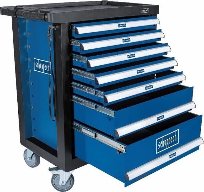 Gewöhnlich versandfertig in 6 bis 7 TagenScheppach Werkstattwagen TW1100 Werkzeugwagen Werkzeugkasten mit 4 Rollen | 7 Schubladen - inklusive 70-TLG. Werkzeugset | abschließbar und mobil