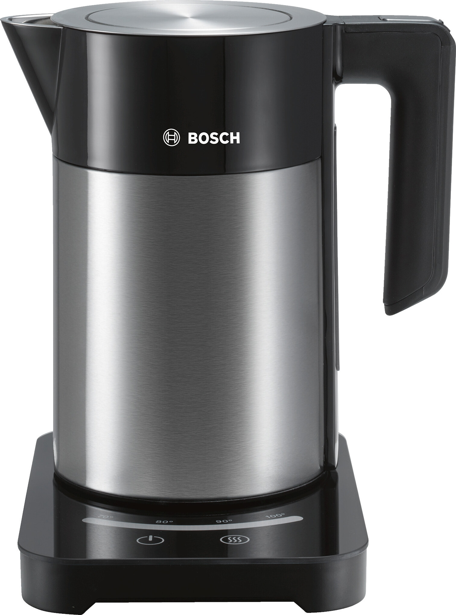 Auf Lager Versand durch AmazonBosch kabelloser Wasserkocher TWK7203, Abschaltautomatik, Überhitzungsschutz, 7 Temperatureinstellungen, Warmhaltefunktion, 1,7 L, 2200 W, schwarz