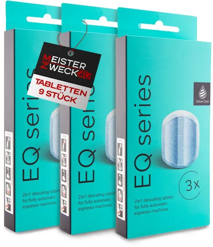 Kategorie: Kaffeezubehör & Espressozubehör - meisterzweck4u - GTIN:4262407151198 - [LäNGERE HALTBARKEIT] Verlängern Sie die Lebensdauer Ihrer Maschine mit Siemens TZ80002 Entkalkungstabletten, die Kalkablagerungen effektiv entfernen. Dank gründlicher und sanfter Reinigung wird Ihr Kaffeevollautomat optimal gepflegt und bleibt Ihnen für lange Zeit zuverlässig erhalten. [DOPPEL-EFFEKT] Die leistungsstarke 2in1-Formel beseitigt Kalk und beugt Korrosion vor. So profitieren Ihre Kaffeevollautomaten von einer umfassenden Reinigung und Schutz zugleich für langlebige, leistungsstarke Geräte und konstanten Kaffeegenuss ohne Beeinträchtigung. [EINFACHE ANWENDUNG] Entwickelt für die automatische Entkalkung, sind die Tabletten optimal für die EQ- und surpresso-Reihe. Die spezielle Formel sorgt für eine sichere und effiziente Entkalkung, die Ihr Gerät schützt und gleichzeitig für beste Leistung und Benutzerfreundlichkeit sorgt. [KOMPATIBEL MIT VIELEN MODELLEN] Universell geeignet für Siemens Kaffeevollautomaten der EQ, surpresso und Einbauserien. Die Entkalkungstabletten sind eine flexible Lösung für verschiedene Modelle, um stets die maximale Leistung und Langlebigkeit Ihrer Maschinen zu gewährleisten. [FLEXIBLE PACKUNGSGRöSSEN] Erhältlich in Packungen mit 2x3, 9, 4x3, 15 oder 18 Tabletten passend für jeden Bedarf. Wählen Sie die ideale Menge für Ihre Nutzung, um eine optimale Pflege Ihrer Maschine sicherzustellen und jederzeit aromatischen Kaffee ohne Kalkablagerungen zu genießen. - ... Ein attraktives Angebot auf eBay für 9 Entkalkungstabletten, das eine gute Menge für den Preis bietet. ![]() ![]() SIEMENS TZ80002 - 9 Entkalkungstabletten eBay für EQ + surpresso Kaffeevollautomaten