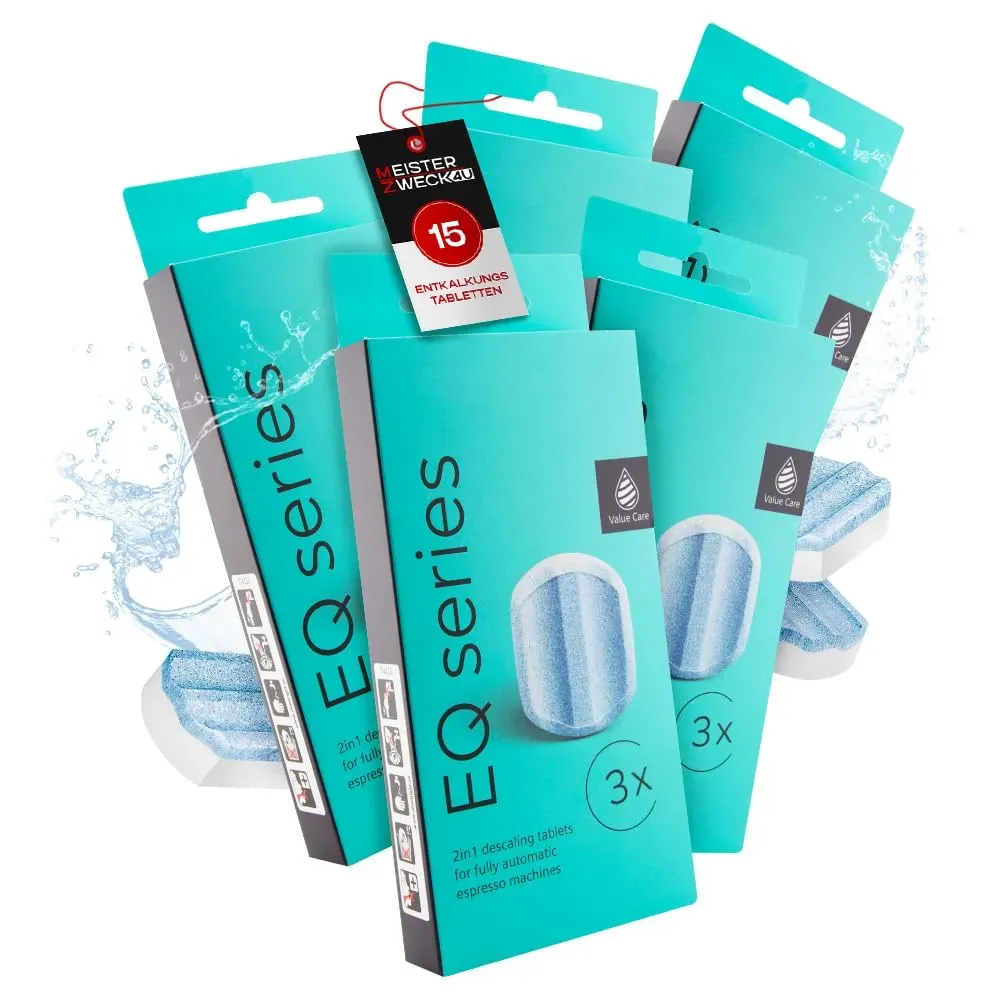 Kategorie: Kaffeezubehör & Espressozubehör - meisterzweck4u - GTIN:4262407150771 - [LäNGERE LEBENSDAUER] Längere Geräte-Lebensdauer dank optimalem Schutz vor Kalkablagerungen. Sichern Sie sich eine verlängerte und effiziente Nutzung Ihrer Kaffeevollautomaten mit Siemens TZ80002 Entkalkungstabletten, speziell entwickelt für eine gründliche und schonende Entkalkung. [2IN1 FORMEL] 2in1: Entfernt Kalk und schützt vor Korrosion. Die Entkalkungstabletten bieten umfassenden Schutz und Reinigung für Ihre Kaffeevollautomaten. Profitieren Sie von der doppelten Wirkung und halten Sie Ihre Maschinen länger leistungsfähig und gepflegt. [OPTIMIERT] Optimiert für den automatischen Entkalkungsprozess, perfekt geeignet für alle Kaffeevollautomaten der EQ und surpresso Reihe. Unsere Entkalkungstabletten sind speziell formuliert, um maximale Effizienz und Benutzerfreundlichkeit zu gewährleisten, ohne Ihre Geräte zu beschädigen. [UNIVERSAL EINSETZBAR] Geeignet für alle Kaffeevollautomaten der EQ Reihe sowie Einbauvollautomaten und surpresso Reihe. Die Entkalkungstabletten bieten eine universelle Lösung für Ihre Entkalkungsbedürfnisse, um stets die beste Leistung Ihrer Maschinen zu ren. [VERSCHIEDENE PACKUNGEN] Verfügbar in verschiedenen Packungsgrößen: 2x3 Stück, 9 Stück, 4x3 Stück, 15 Stück, 18 Stück für flexible und bedarfsgerechte Anwendung. Wählen Sie die passende Größe für Ihren Bedarf und genießen Sie stets frischen, aromatischen Kaffee ohne Kalkprobleme. - 39,95 Euro bei Amazon ... Ein großes Paket mit 15 Entkalkungstabletten von MEISTERZWECK4U, das sich für Vielnutzer oder Großfamilien eignet. ![]() ![]() MEISTERZWECK4U Entkalkungstabletten kompatibel mit Siemens TZ80002-15Stück für alle EQ & Supresso Kaffeevollautomaten - Reinigung Entkalkung Kaffeemaschinen entfernt Kalkablagerungen