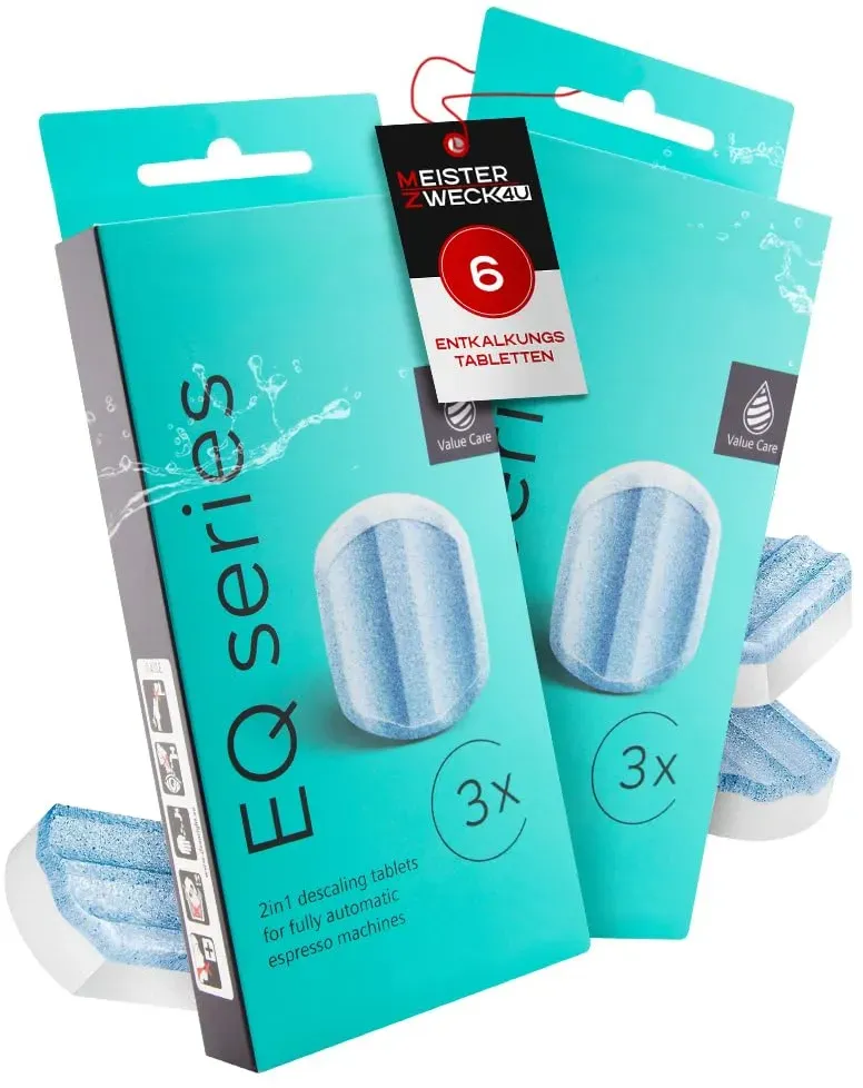 Kategorie: Kaffeezubehör & Espressozubehör - meisterzweck4u - GTIN:4262407150788 - [LäNGERE LEBENSDAUER] Verlängern Sie die Lebensdauer Ihres Geräts durch optimalen Schutz vor Kalkablagerungen. Unsere speziell entwickelten Entkalkungstabletten sorgen für eine gründliche und schonende Entkalkung, damit Ihr Kaffeevollautomat effizient und langlebig bleibt. [2IN1 FORMEL] 2in1: Entfernt Kalk und schützt vor Korrosion. Die Entkalkungstabletten bieten umfassenden Schutz und Reinigung für Ihre Kaffeevollautomaten. Profitieren Sie von der doppelten Wirkung und halten Sie Ihre Maschinen länger leistungsfähig und gepflegt. [OPTIMIERT] Optimiert für den automatischen Entkalkungsprozess, perfekt geeignet für alle Kaffeevollautomaten der EQ und surpresso Reihe. Unsere Entkalkungstabletten sind speziell formuliert, um maximale Effizienz und Benutzerfreundlichkeit zu gewährleisten, ohne Ihre Geräte zu beschädigen. [UNIVERSAL EINSETZBAR] Geeignet für alle Kaffeevollautomaten der EQ Reihe sowie Einbauvollautomaten und surpresso Reihe. Die Entkalkungstabletten bieten eine universelle Lösung für Ihre Entkalkungsbedürfnisse, um stets die beste Leistung Ihrer Maschinen zu ren. [VERSCHIEDENE PACKUNGEN] Verfügbar in verschiedenen Packungsgrößen: 2x3 Stück, 9 Stück, 4x3 Stück, 15 Stück, 18 Stück für flexible und bedarfsgerechte Anwendung. Wählen Sie die passende Größe für Ihren Bedarf und genießen Sie stets frischen, aromatischen Kaffee ohne Kalkprobleme. - 49,95 Euro bei Amazon Marketplace ... Dieses umfangreiche Paket mit 10x TZ80002 Entkalkungstabletten ist die größte Einzelpackung in der Liste und bietet den besten Preis pro Tablette für Langzeitnutzer. ![]() ![]() SIEMENS 10 x TZ80002 Entkalkungstabletten für alle EQ + surpresso Kaffeevollautomaten