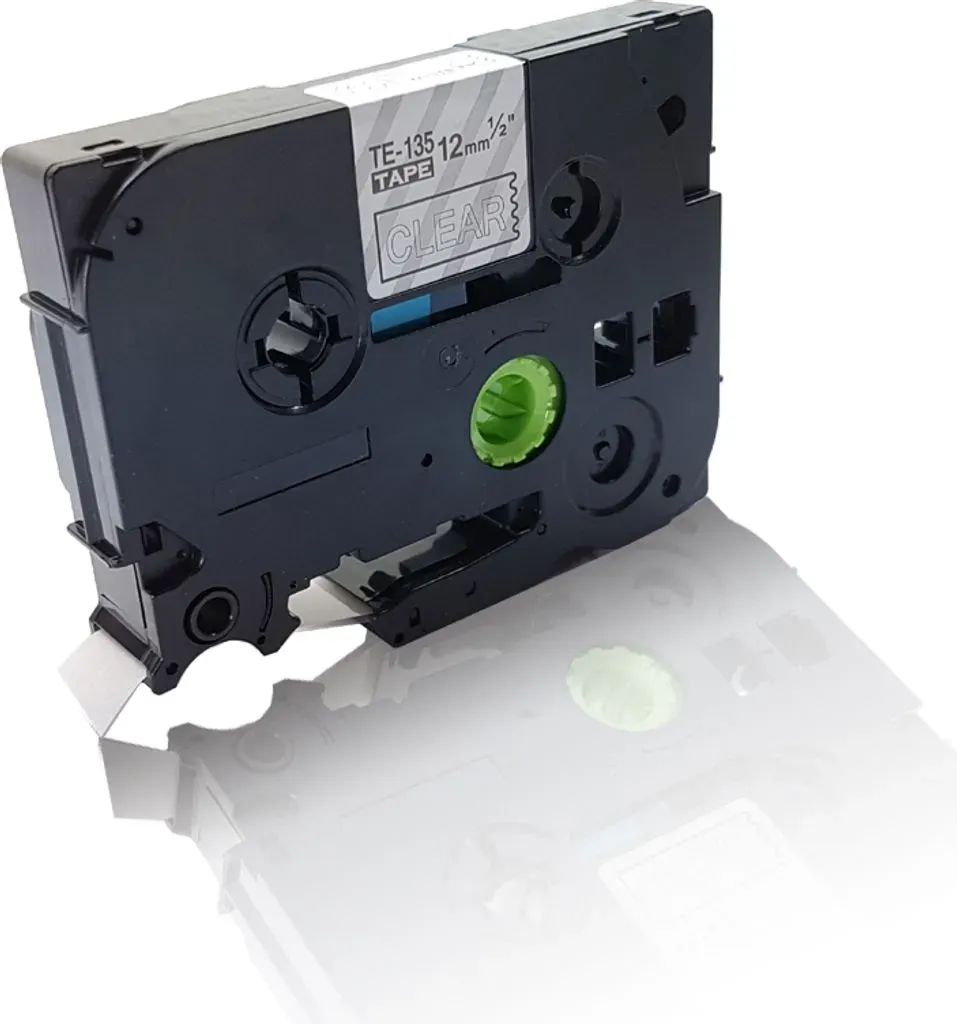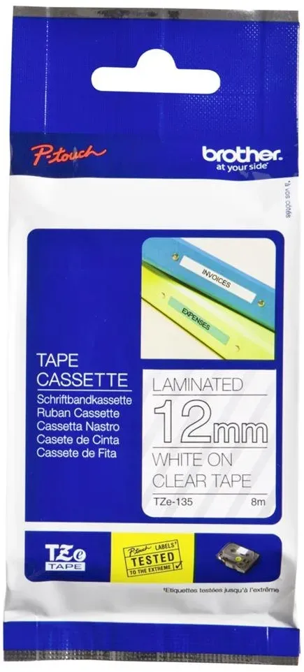 Lieferzeit 1-2 Tage innerhalb DE und ATBrother P-Touch Band TZe-135 weiß auf transparent 12mm / 8m laminiert