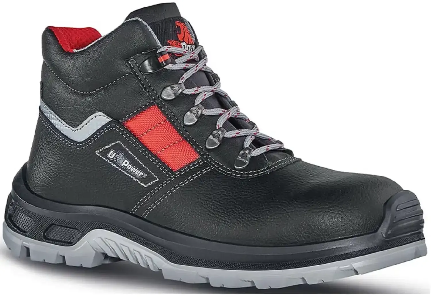 U-Power - EAN: 8033546308639 - Der U-Power Bjorn S3 SRC UF20084 ist ein wasserabweisender Sicherheitsschuh aus weichem Pull-Up Leder. Das atmungsaktive Innenfutter WingTex besitzt Zirkulationskanäle, die die Luft optimal nach draussen befördern. Die perforierte Alukappe bietet ein zusätzliches Ventil, um Luft nach aussen zu leiten. Darunter befindet sich eine Membran, die die Schuhe an dieser Stelle trotzdem dicht hält. Der Durchtrittschutz ist aus Textilien und bietet einen 100%igen Schutz. Das PolySoft Fussbett ist antibakteriell, anatomisch geformt und bietet einen sehr guten Komfort. Für ausgezeichnete Dämpfung sorgt die Zwischenschicht aus Comfort PU, die dauerhaft maximalen Abrollkomfort bietet. Die gripstarke Laufsohle mit sehr gutem Profil ist aus PU/PU und bietet dem Träger sehr guten Halt auf jedem Untergrund. Die Schuhe sind in der Weite 11 und sorgen bei fast jedem Träger für ausreichenden Komfort. - bei galaxus.de - aus Yadore Produktdaten Der U-Power Red Lion Hummer ist ein hoch geschnittener, leichter und flexibler Sicherheitsschuh mit Infinergy-Einsatz für maximale Dämpfung. ![]() ![]() U-Power Red Lion Hummer, Sicherheitsschuhe, hoch, leicht und flexibel, perforationsfest, pannensicher, mit Infinergy-Einsatz, mit Aluminium-Zehenkappen - Grey & Green 42