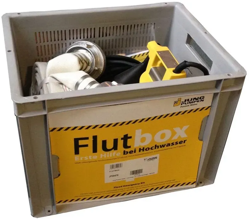 ![]() ![]() Jung Erste Hilfe Flutbox mit U5KS mit 10m Kabel Tauchpumpe 12,5m C-Schlauch JP09479