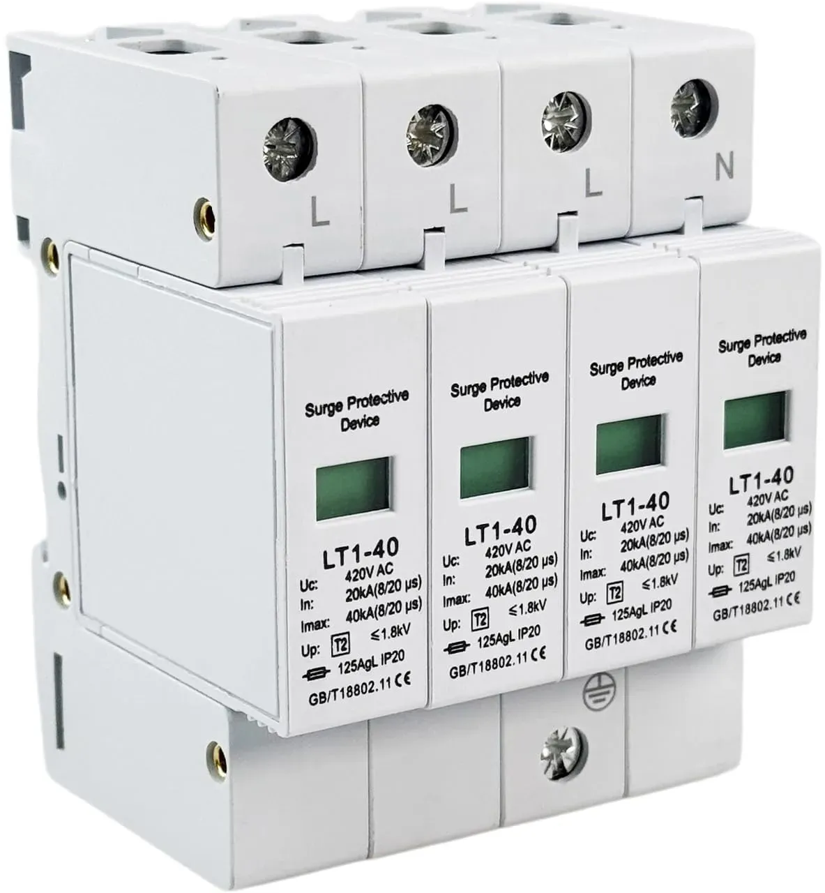 Auf Lager Versand durch AmazonKNMIPJD 230V überspannungsschutz 4-Polig Überspannungsableiter Typ 1+Typ 2 20-50KA Überspannungsschutzgerät für PV Für den Blitzschutz (230V 20-50KA)