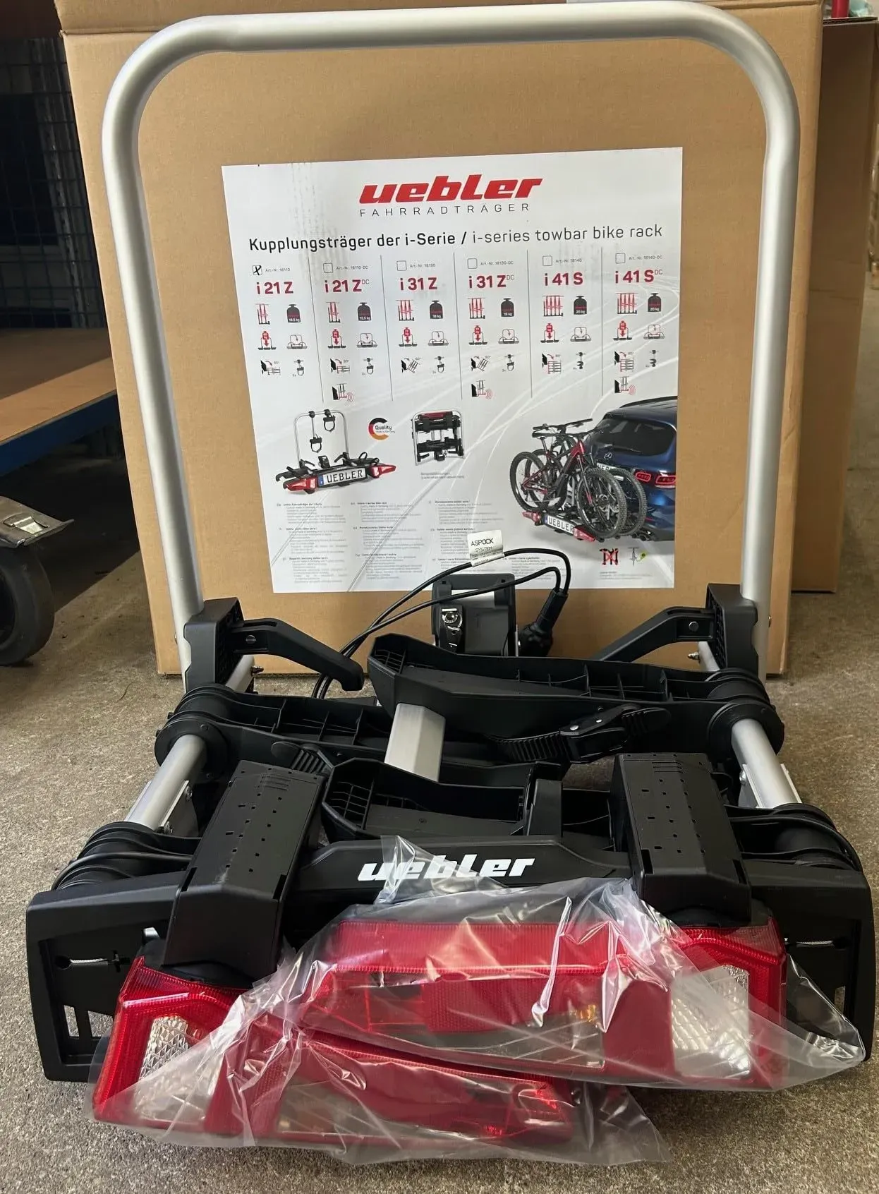 Kategorie: Fahrradträger - Uebler - GTIN:4260230941214 - UEBLER i21 Z Fahrradträger – Kompakt, faltbar & flexibel Der UEBLER i21 Z (Art.-Nr. 18110) ist die hochwertige Lösung für den Transport von bis zu zwei Fahrrädern oder E-Bikes. Mit seiner praktischen 90 -Abklappfunktion bleibt der Kofferraum jederzeit gut zugänglich – auch bei montierten Rädern. Leicht, sicher & bedienungsfreundlich 90 Abklappmechanismus – erleichtert den Zugang zum Kofferraum Für zwei Fahrräder, max. Zuladung 60 kg (30 kg pro Rad) Geeignet für Fahrradrahmen bis 80 mm (auch Kastenrahmen) Abnehmbare Abstandshalter mit Zahnband und Einhand-Bedienung Kompakt & clever verstaut Extrem leicht (nur ca. 13,5 kg) – maximale Zuladung bei minimalem Eigengewicht Platzsparend zusammenklappbar für einfachen Transport und Lagerung Patentierter IQ-Verschluss für schnelles, hebelloses Montieren Technische Daten Max. Anzahl Räder: 2 Zuladung: 60 kg Eigengewicht: ca. 13,5 kg Rahmengröße: bis 80 mm Radstand: bis ca. 1300 mm Reifenbreite: bis 3 Zoll (optional bis 4,5 Zoll mit Zahnband-Umrüstung) Abklappwinkel: 90 Abstand zwischen den Fahrrädern: ca. 22 cm Träger und Abstandshalter abschließbar Passendes Zubehör 19950: Original Uebler Auffahrschiene mit überfahrschiene 19840: Transporttasche für i-Serie 19960: Abstandshalter mit Zahnband für 1. Fahrrad 19970: Abstandshalter mit Zahnband für 2. Fahrrad Alle Artikel mit Verfügbarkeitsanzeige 'grün' sind in unserem Ladengeschäft vorrätig. Großartikel ... ![]() ![]() Uebler Fahrradträger i21 Z 90° für 2 Fahrräder Auto Kupplungsträger klappbar E-Bike MTB inklusive reflektierende Warntafel 50x50cm + 4 Spanngummis