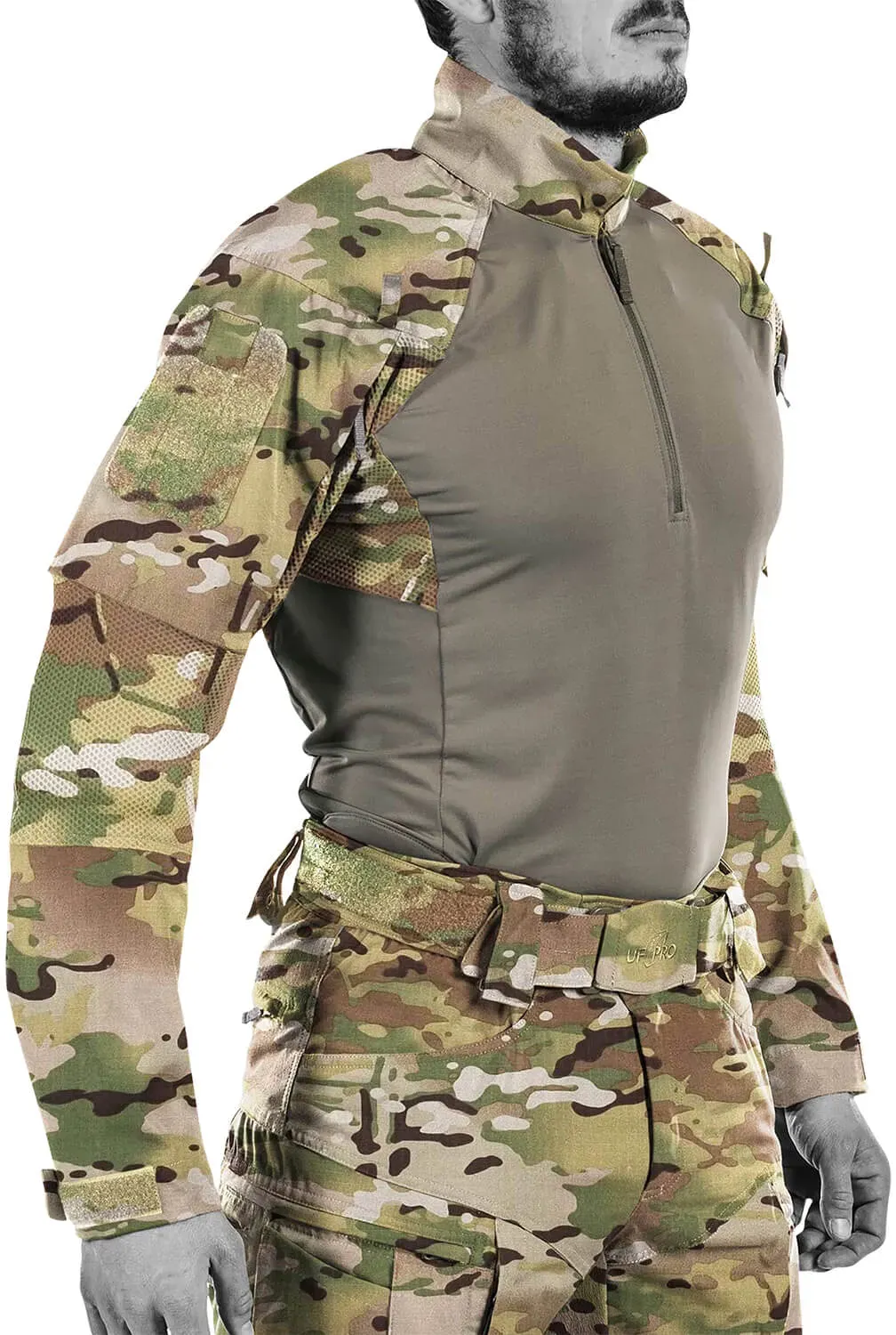 Verfügbarkeit: Auf Lager - Kategorie: Blusen - UF Pro - GTIN:3831121889437 - Die neueste Generation der erprobten UF PRO Striker XT Combat Shirts bieten höchsten Komfort bei extremer Atmungsaktivität und hoher Robustheit durch Ripstop-Gewebe. Mit integrierten Polstern im Schulter- und Hüftbereich, 3D-Mesh Belüftungssystem und zwei großen (15 x 21 cm) Oberarmtaschen ist es der ideale Begleiter in jedem Einsatz. Das atmungsaktive, reißfeste Ripstop Hauptmaterial wird in einer speziellen Webtechnik hergestellt, bei der in Abständen von 5-8 mm dickere Fäden in das sonst dünne Gewebe integriert werden. Herausnehmbare air/pac Einsätze verteilen das Gewicht eines Rucksacks oder Plattenträgers gleichmäßig auf beide Schultern. Flauschklettapplikationen für Patches mit integriertem, verstärktem Stiftehalter an beiden Oberarmen. Extralanger Frontreißverschluss zum einfachen An- und Ausziehen. In das Innere des Stehkragens wurde ein weiches Merino Material eingearbeitet. - 149,90 Euro bei Amazon Marketplace Shoes - gefunden von billiger.de Dieses Combat Shirt in Multicam ist eine beliebte Wahl für taktische Anwendungen und bietet ein gutes Preis-Leistungs-Verhältnis. ![]() ![]() UF PRO Striker XT Gen.3 Combat Shirt multicam, Größe M